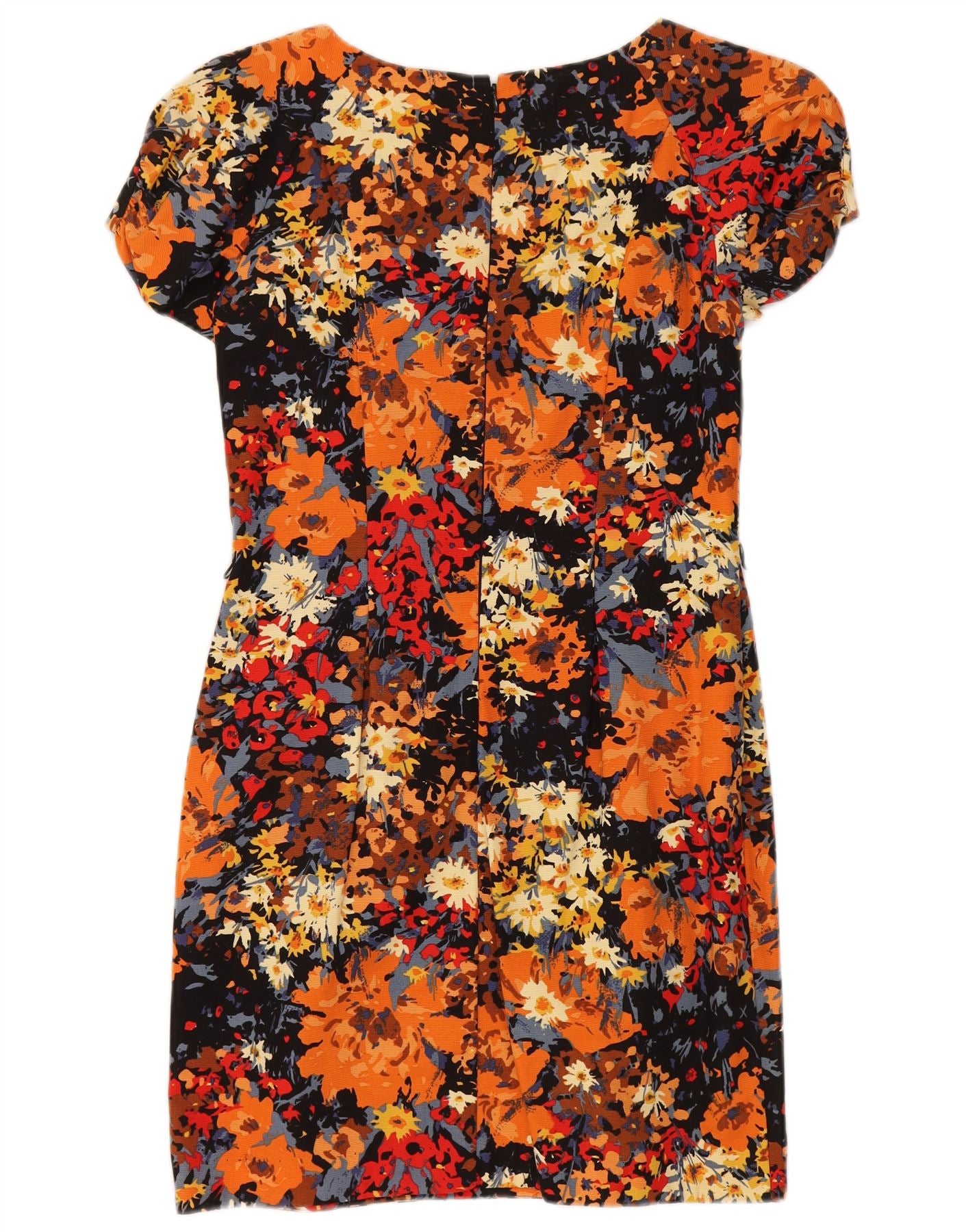 - Descrição da IA: Este vestido feminino Warehouse é confeccionado em voile 100% algodão, oferecendo uma textura leve e tecida. Apresenta um padrão floral vibrante em tons laranja, preto, amarelo e vermelho. O decote redondo e as mangas curtas proporcionam uma silhueta clássica. Um ajuste regular garante um uso confortável. O vestido é totalmente forrado para maior conforto e estrutura. Um discreto fecho de correr na parte traseira completa o design.