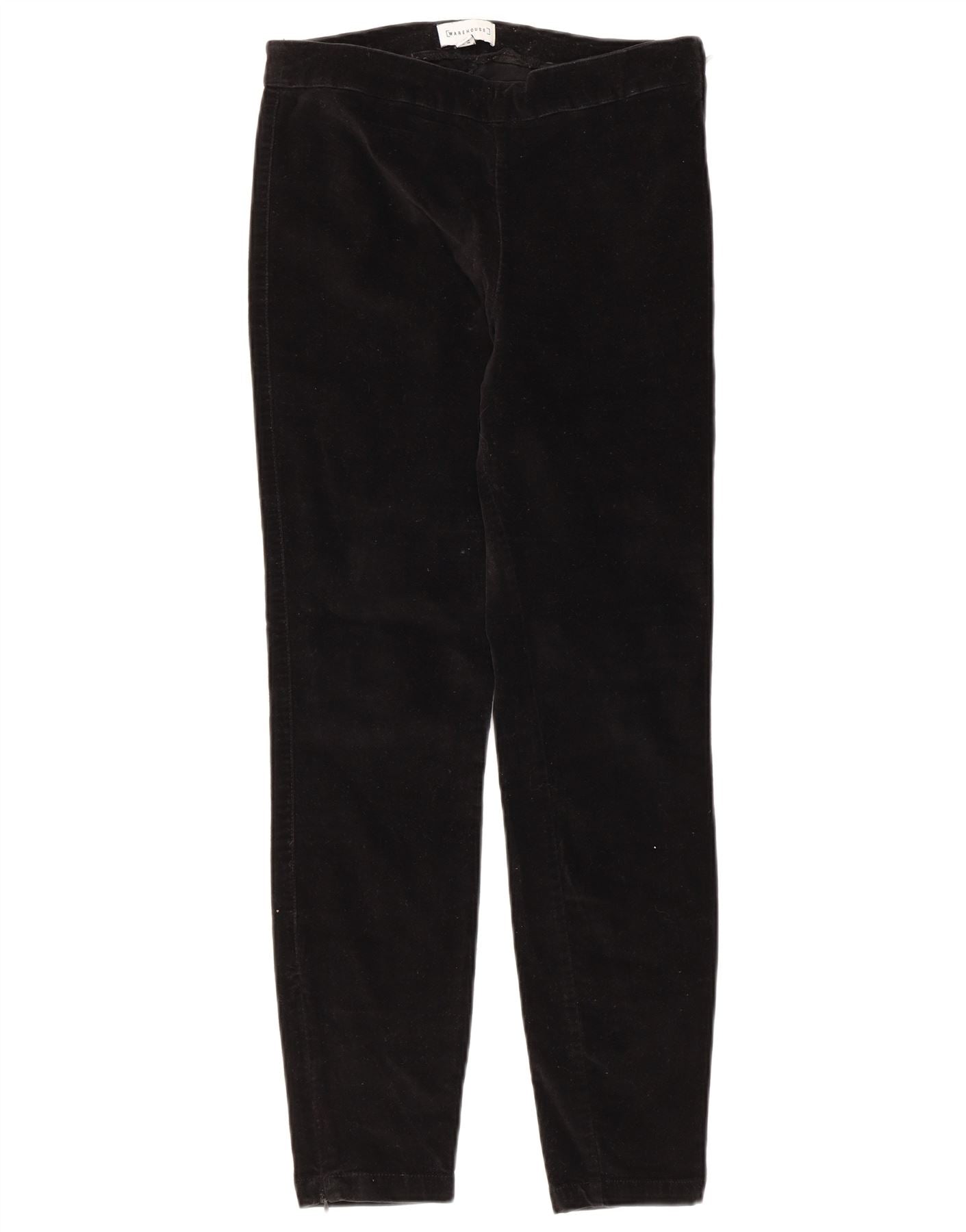 Calça feminina casual de veludo fina WAREHOUSE Reino Unido 10 pequena W30 L27 preta