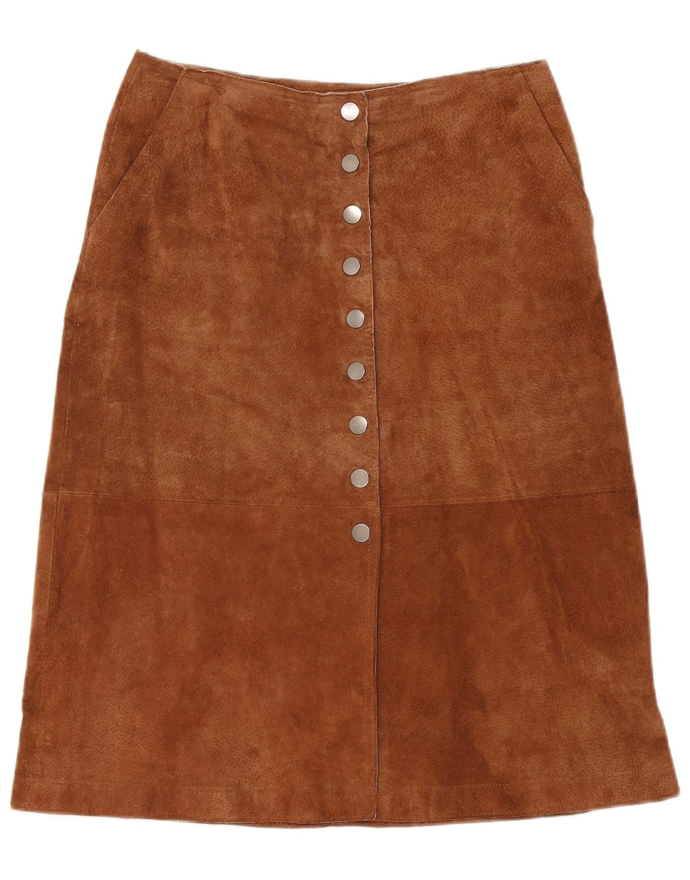 WAREHOUSE Saia feminina de camurça Reino Unido 8 pequena W26 couro marrom