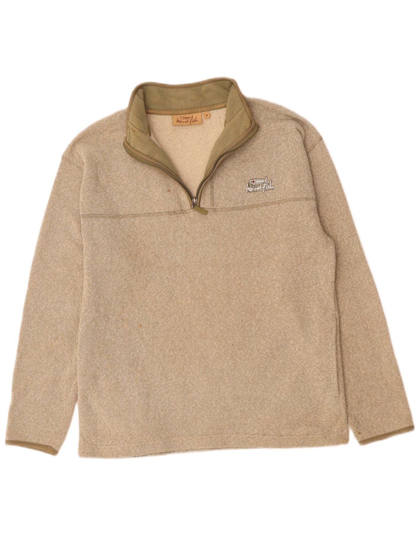 WEIRD FISH Suéter masculino com zíper e gola em poliéster bege médio