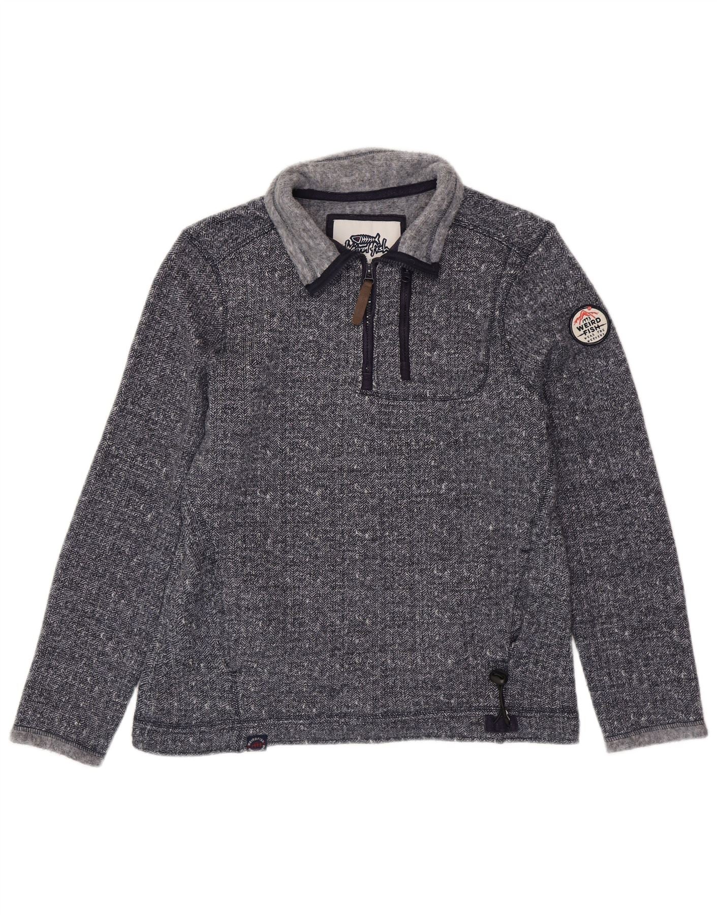 WEIRD FISH Suéter masculino com zíper e gola em espinha pequeno azul marinho