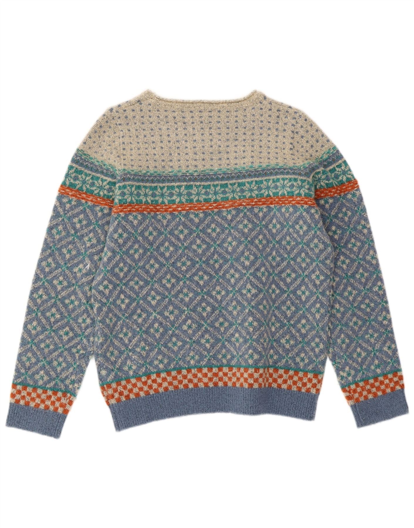 Suéter feminino WEIRD FISH com gola canoa Reino Unido 12 médio azul Fair Isle