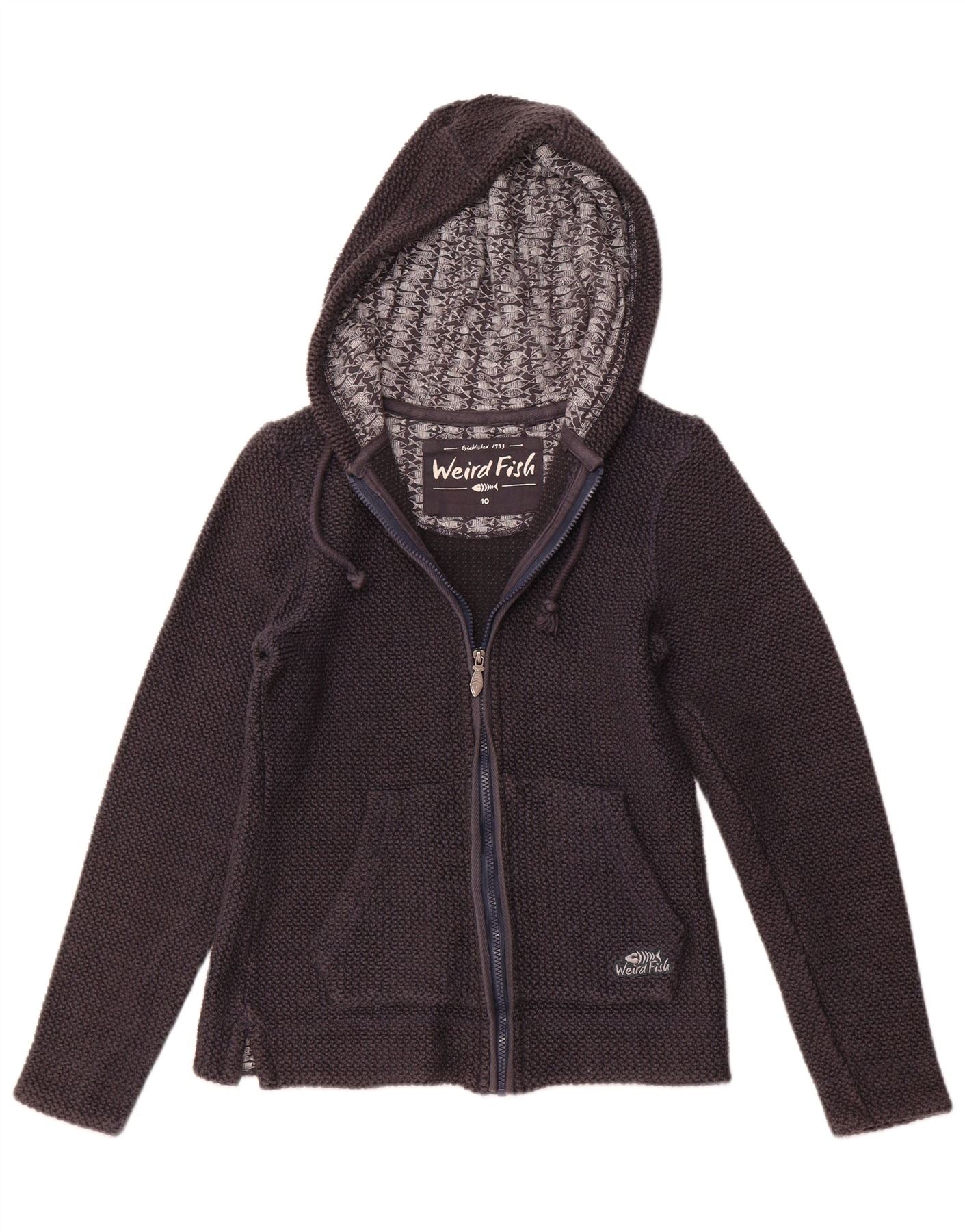 Suéter feminino com capuz e zíper WEIRD FISH Reino Unido 10 pequeno algodão azul marinho