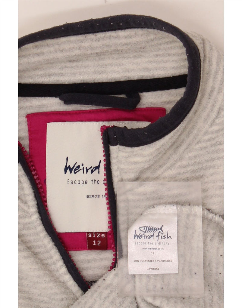 WEIRD FISH Womens Zip Neck Fleece Jumper UK 12 Medium Grey Pinstripe