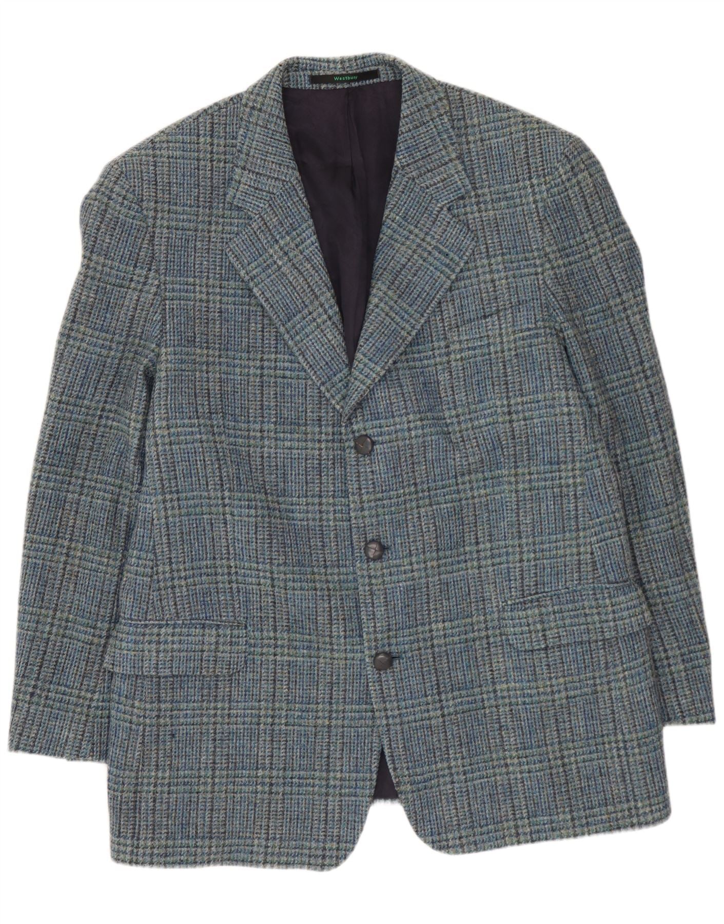 Jaqueta blazer masculina WESTBURY com 3 botões UK 54 2XL azul houndstooth lã