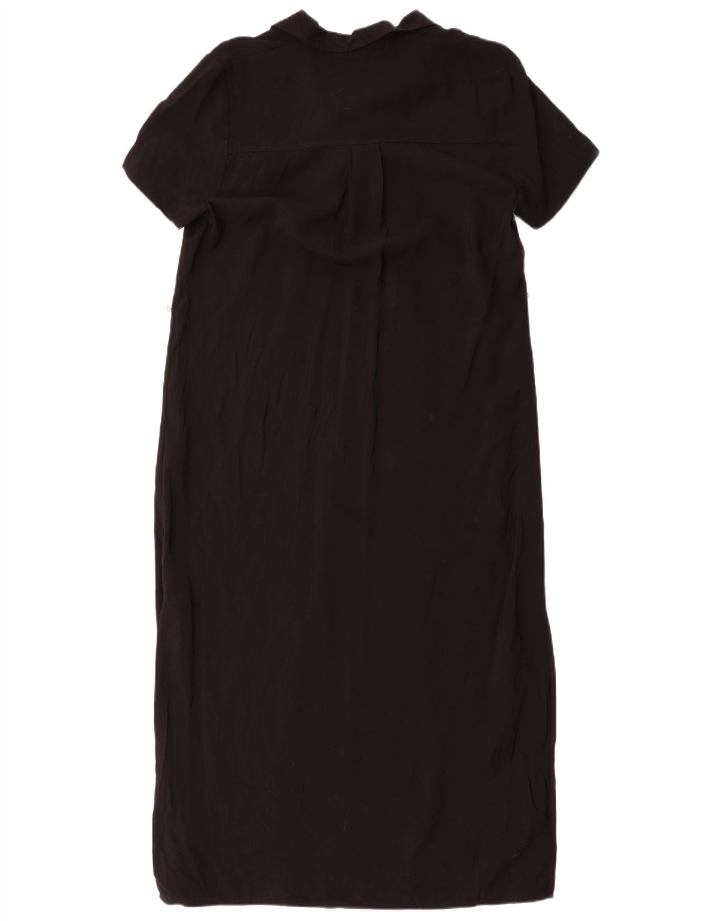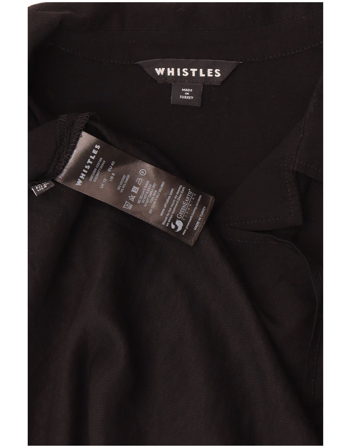 - Descrição da IA: Este vestido camisa feminino Whistles é confeccionado em viscose macia com um toque de elastano, oferecendo um caimento confortável. Possui decote com gola sofisticada e botões frontais completos. As mangas curtas e o corte regular garantem uma silhueta clássica. Bolsos práticos adicionam apelo funcional a este versátil vestido preto. Esta peça moderna combina elegância com facilidade no dia a dia.