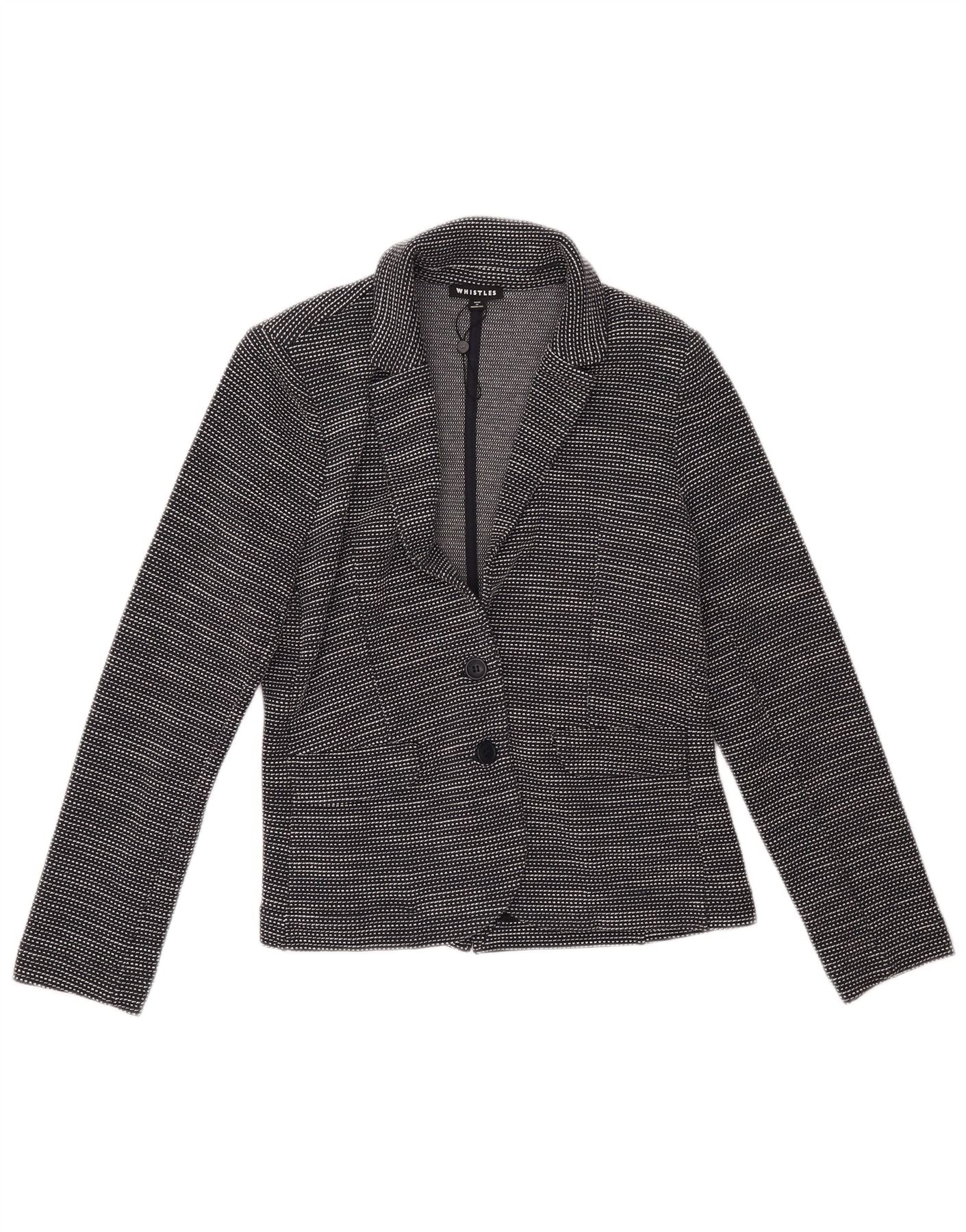 Jaqueta blazer feminina de 2 botões WHISTLES Reino Unido 10 pequeno algodão listrado preto