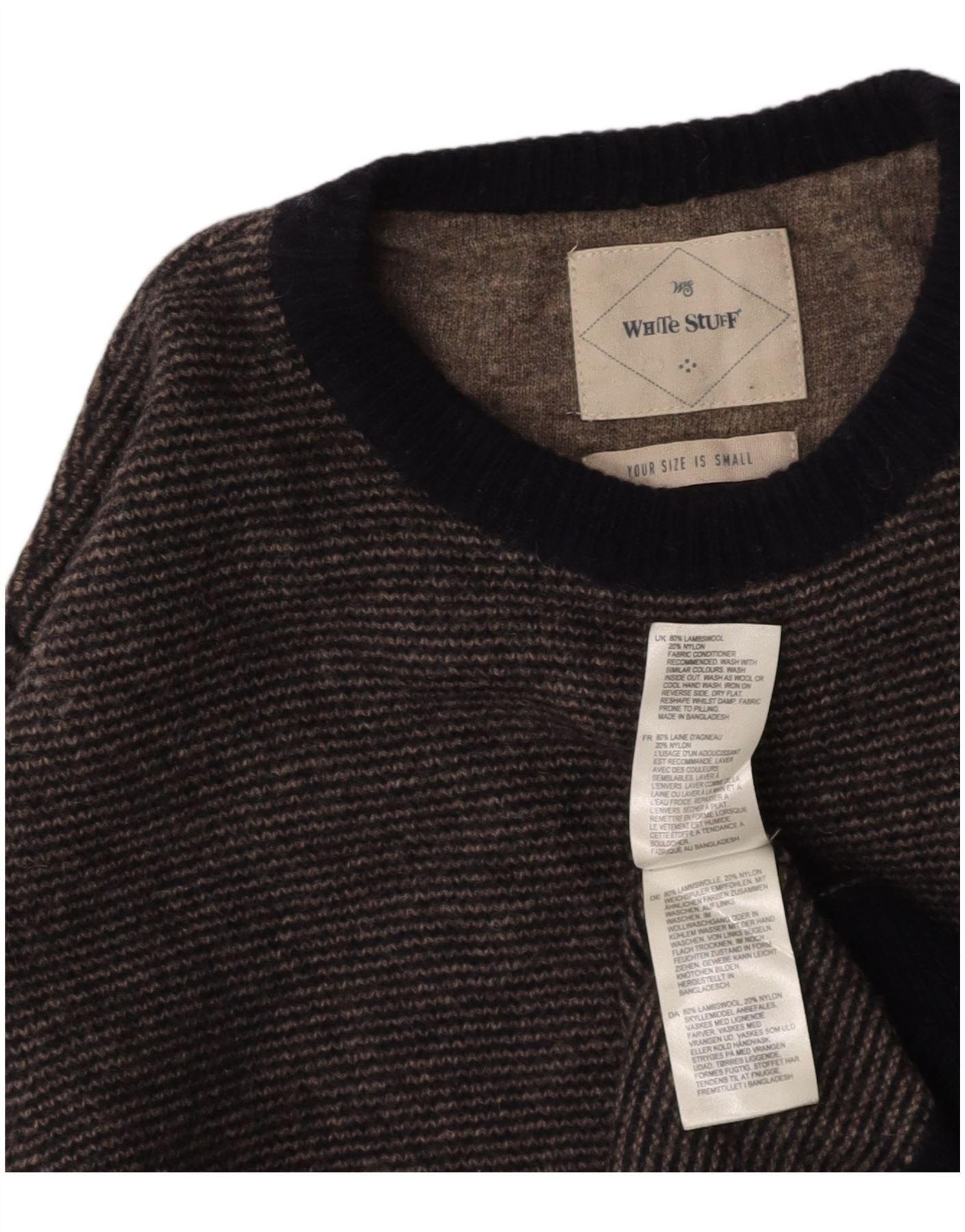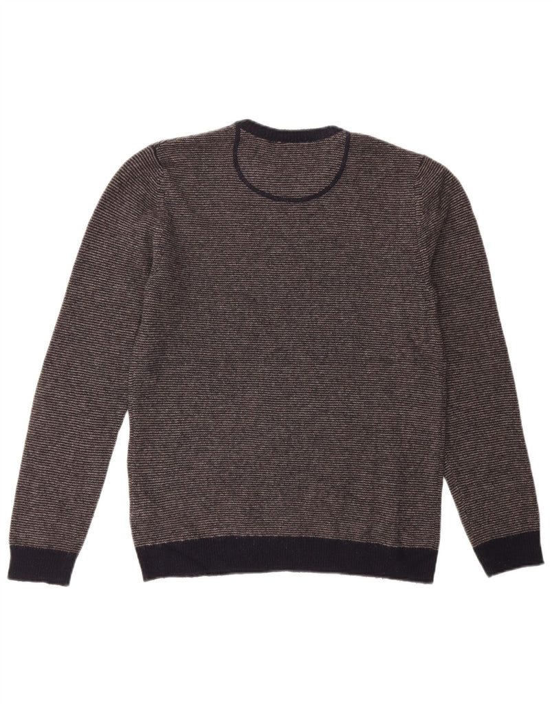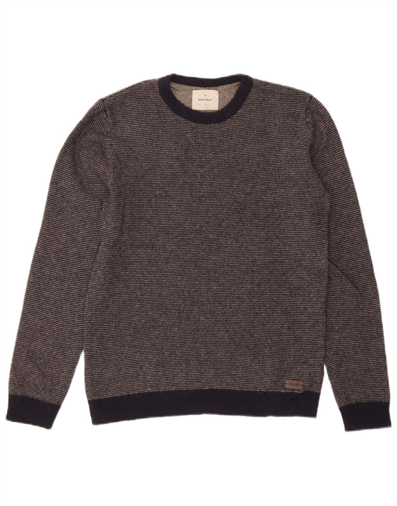WHITE STUFF Mens Crew Neck Jumper Sweater Small Navy Blue Striped Wool