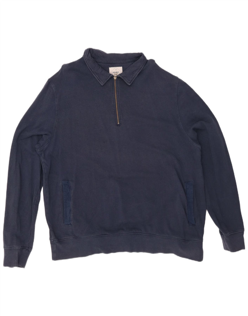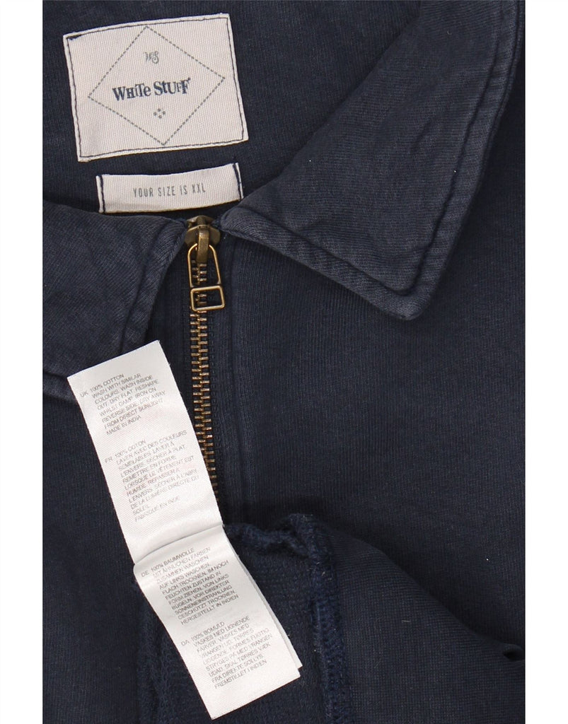 WHITE STUFF Mens Polo Neck Moletom Jumper 2XL Azul Marinho Algodão
