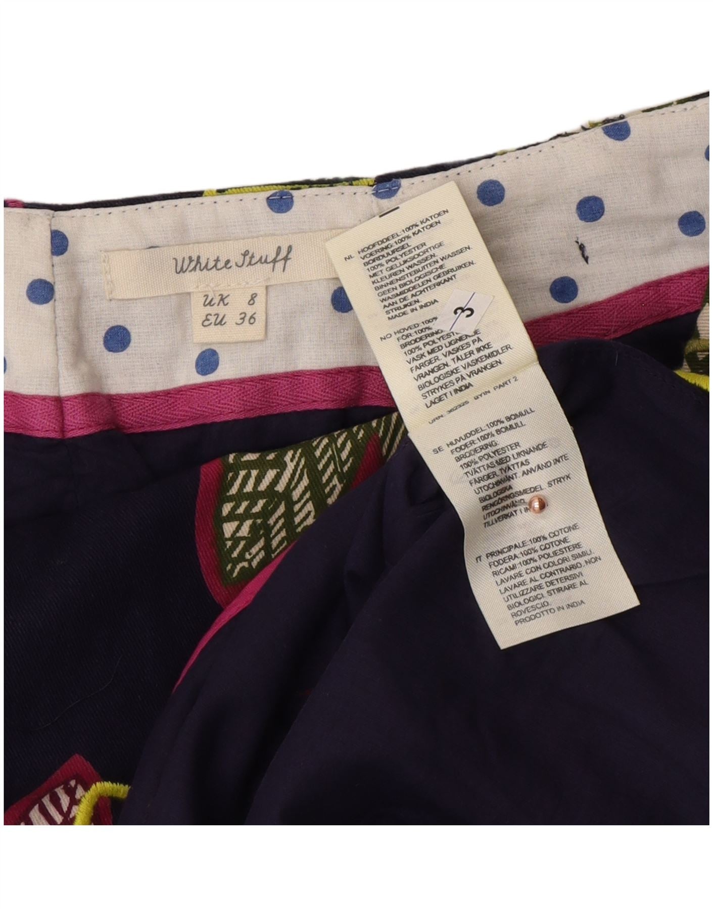 WHITE STUFF Womens A-Line Skirt UK 8 Small W26 Navy Blue Floral Cotton