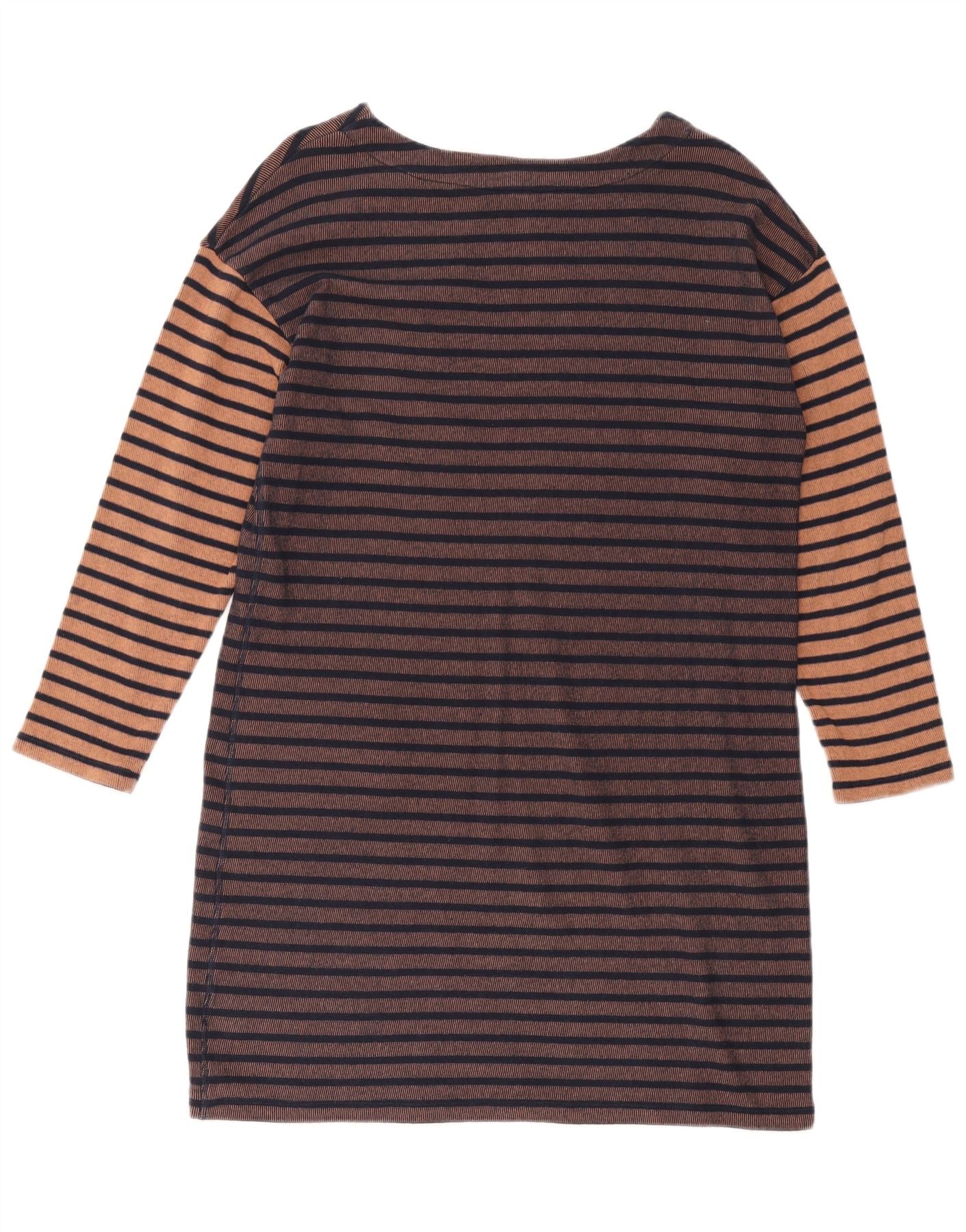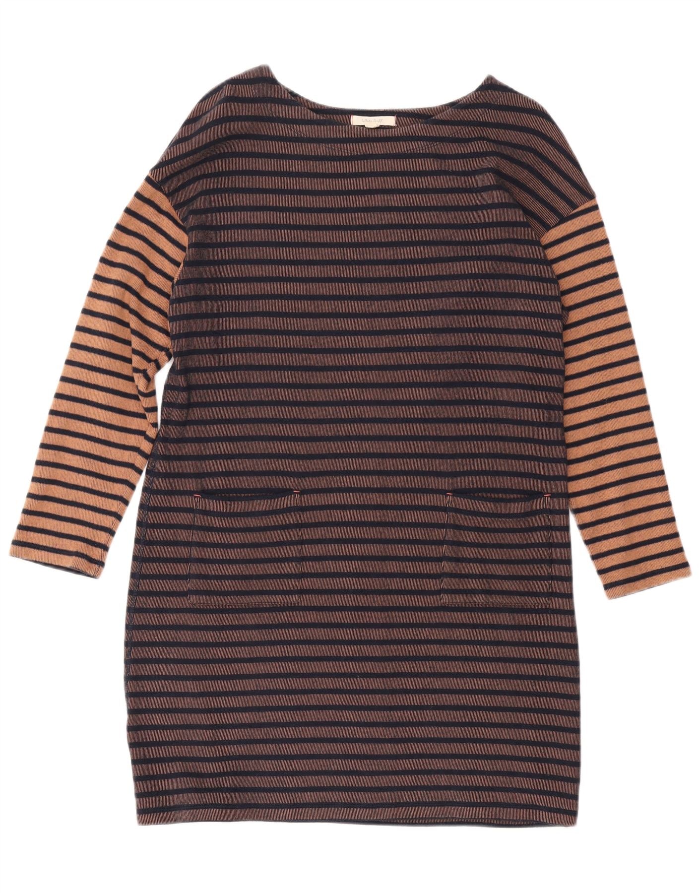WHITE STUFF Vestido feminino de manga comprida com bainha UK 14 grande listrado marrom