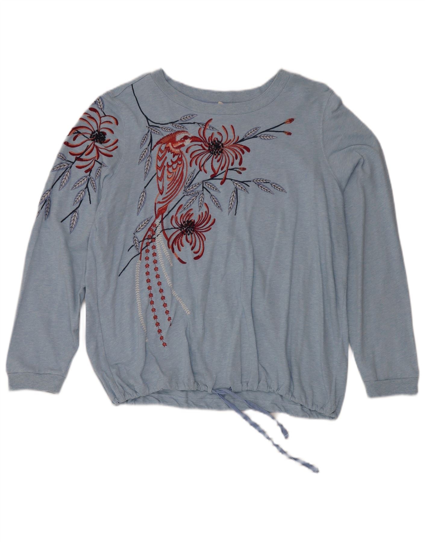 WHITE STUFF Womens Loose Fit Blouse Top UK 16 Large Blue Floral Cotton