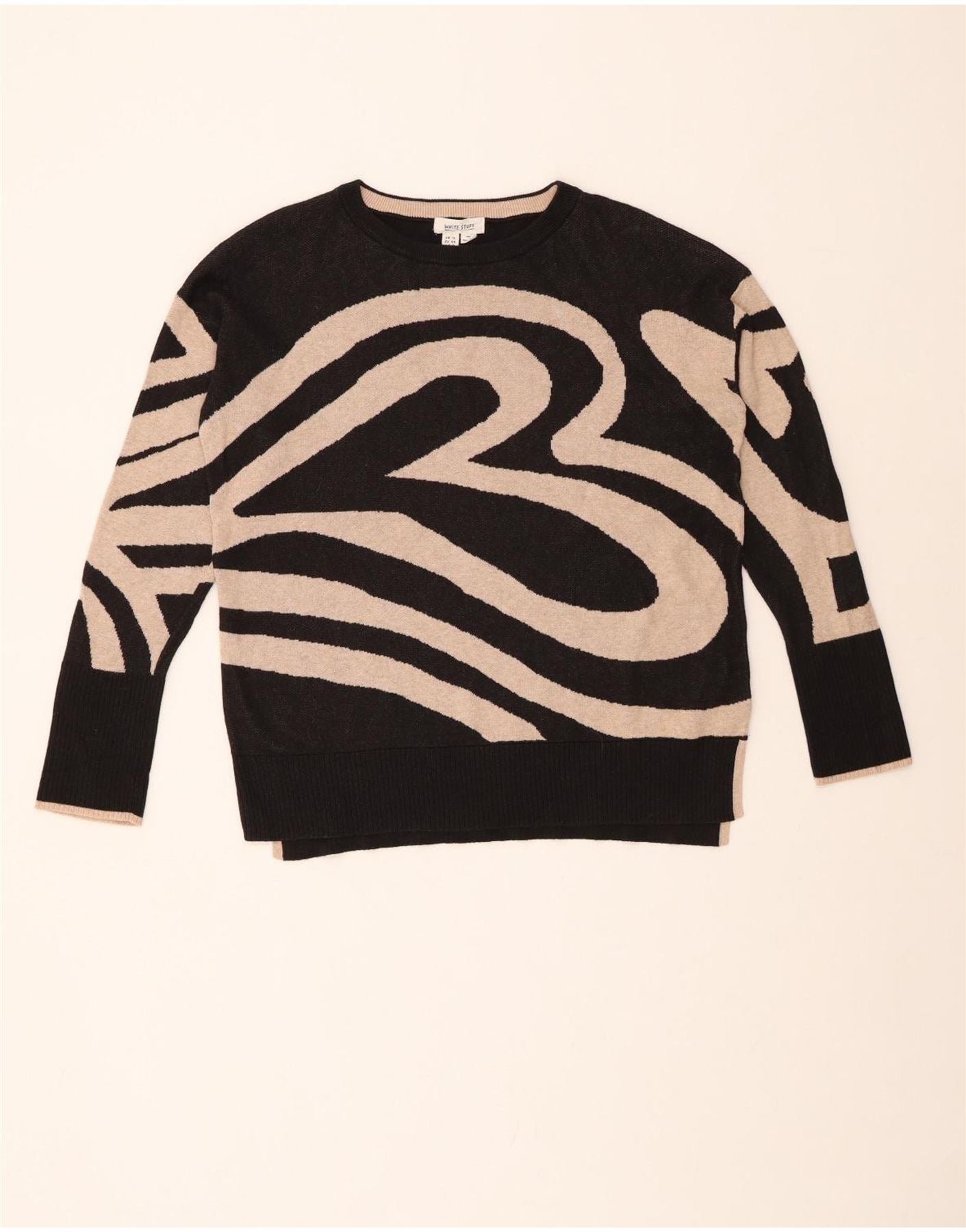 WHITE STUFF Womens Loose Fit Crew Neck Jumper Sweater UK 12 Medium Black