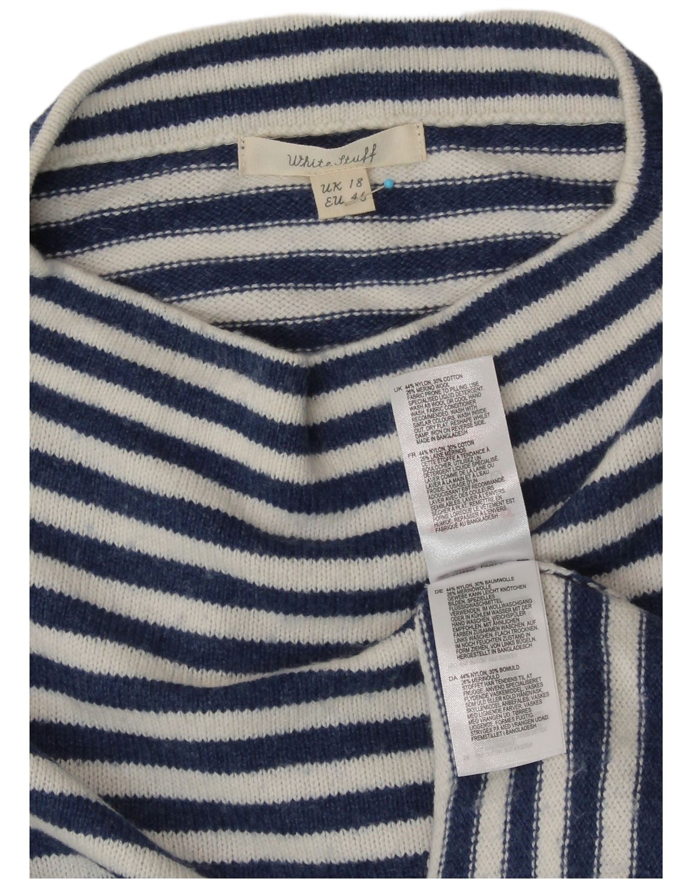 WHITE STUFF Womens Turtle Neck Jumper Sweater UK 18 XL Navy Blue Striped