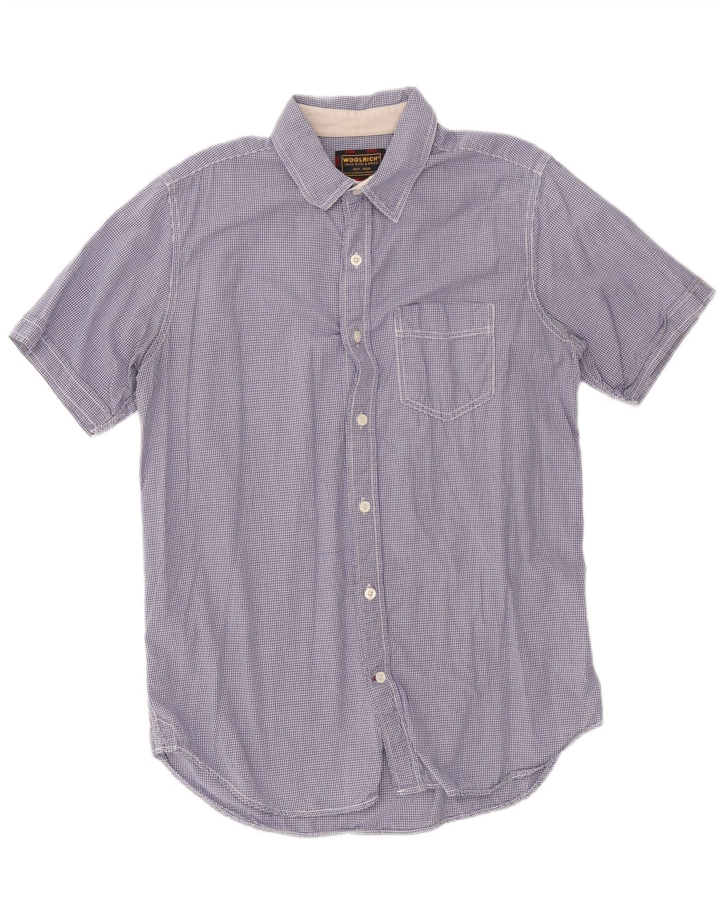 Camisa masculina de manga curta WOOLRICH XL azul marinho guingão