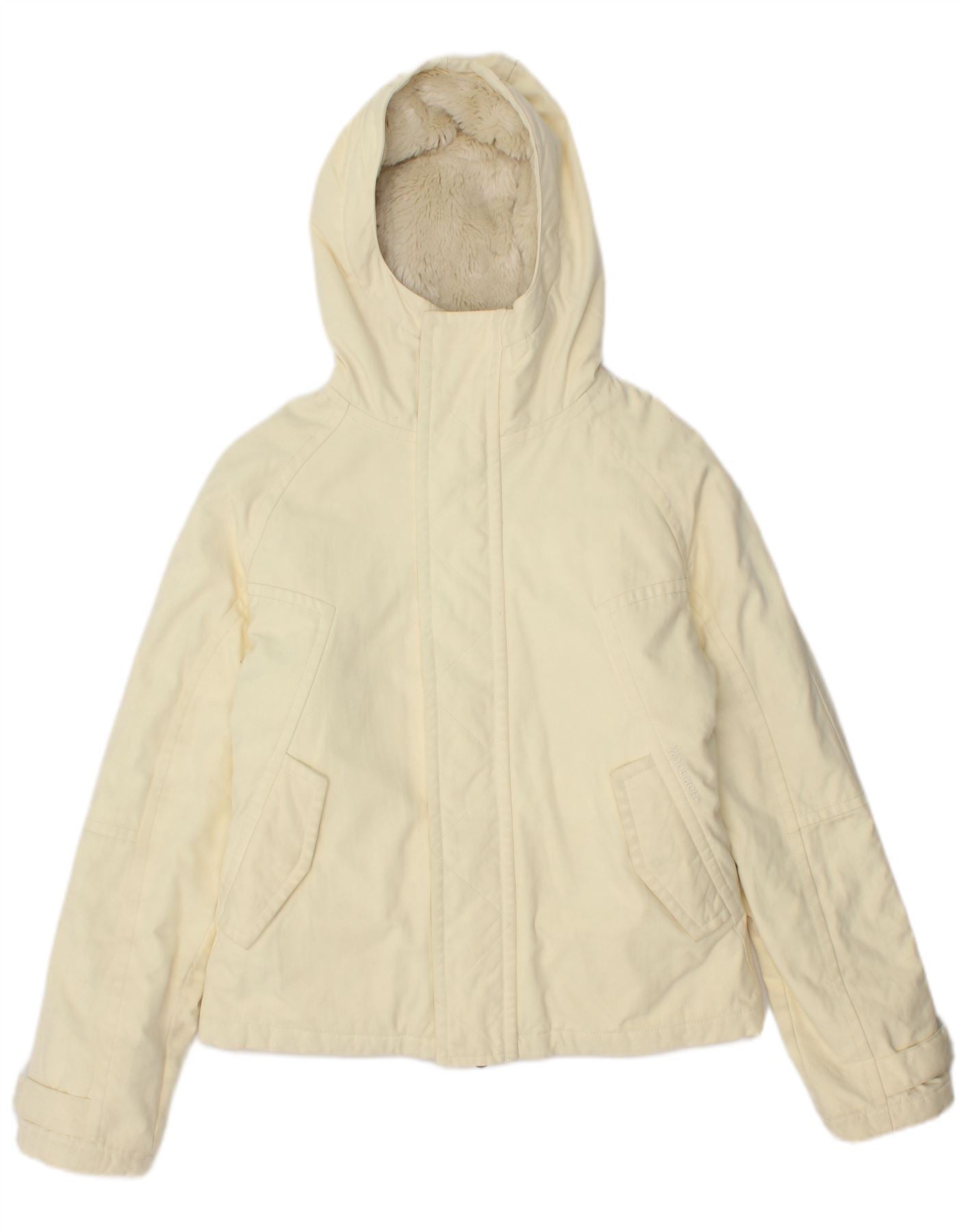 WOOLRICH Womens Hooded Sherpa Bomber Jacket UK 14 Medium Yellow Nylon