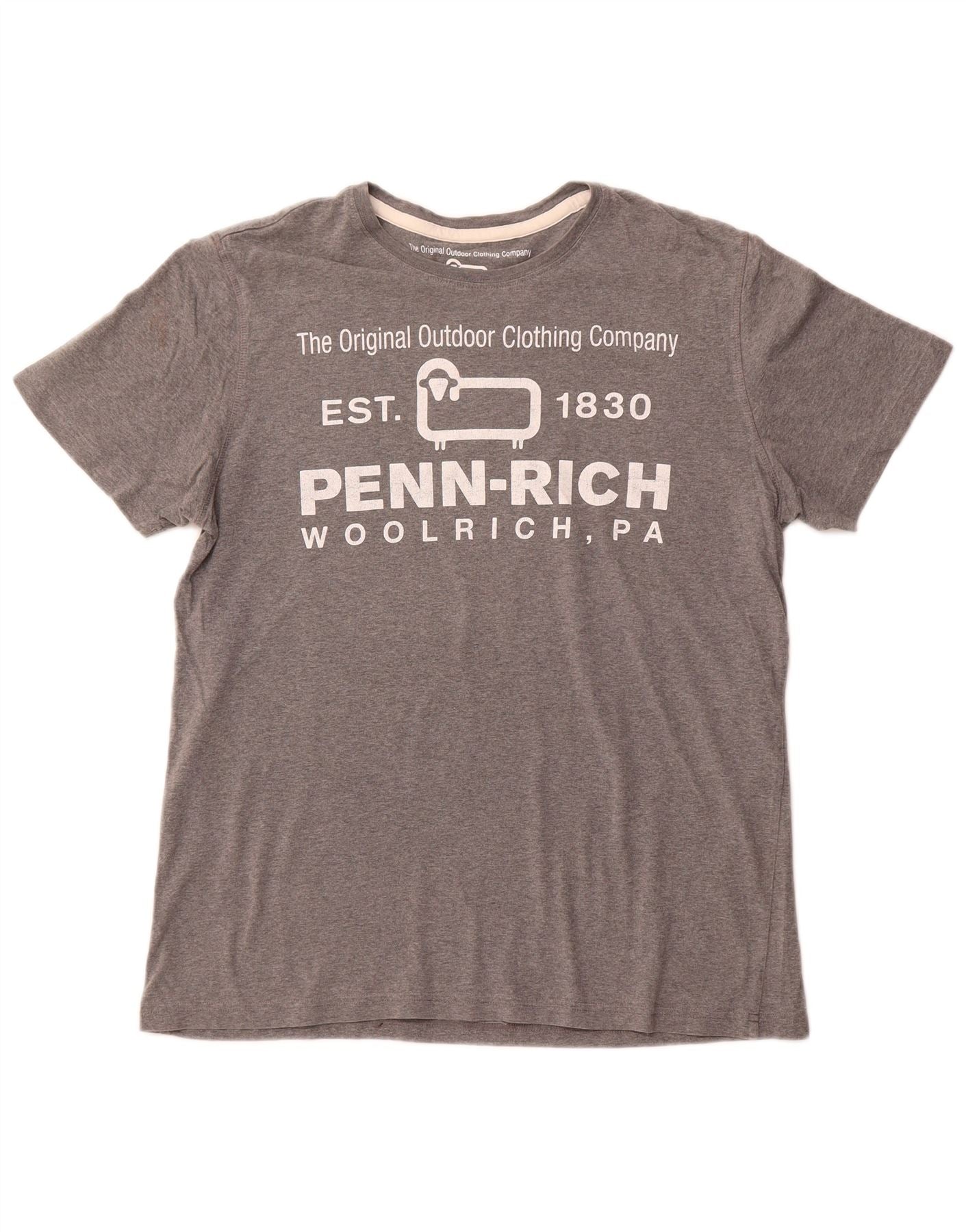 Home > mulheres > Roupas Depop > Camiseta feminina WOOLRICH Penn-Rich com estampa gráfica UK 14 grande cinza manchado