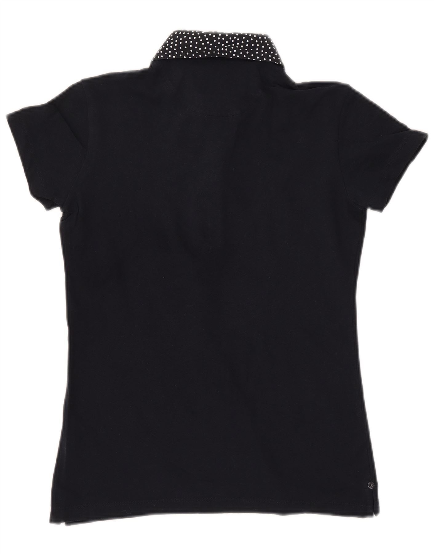 Camisa polo feminina WOOLRICH Slim Fit Reino Unido 12 algodão manchado azul marinho médio