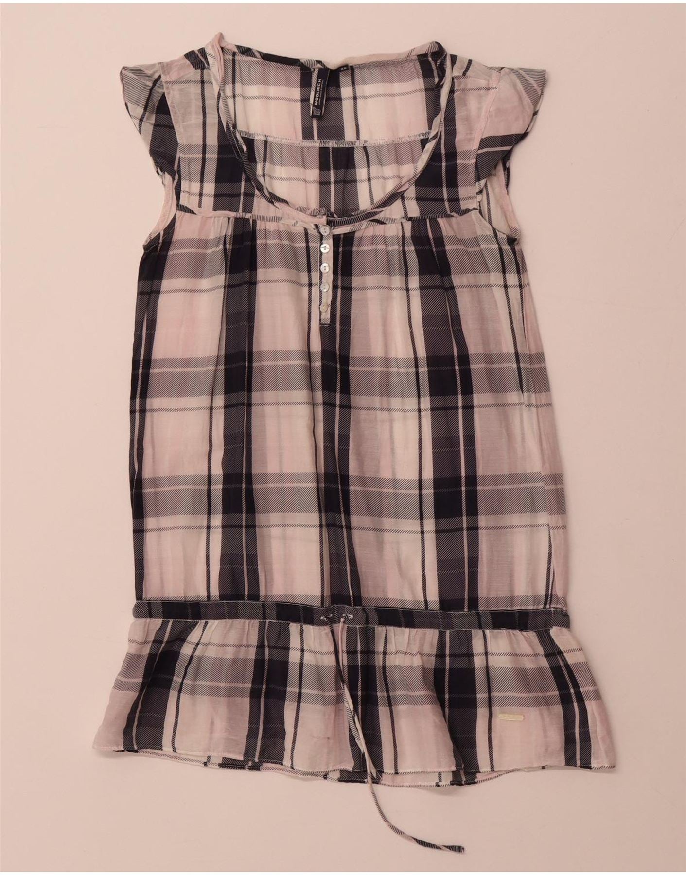 Blusa túnica feminina WOOLRICH UK 6 XS algodão xadrez branco