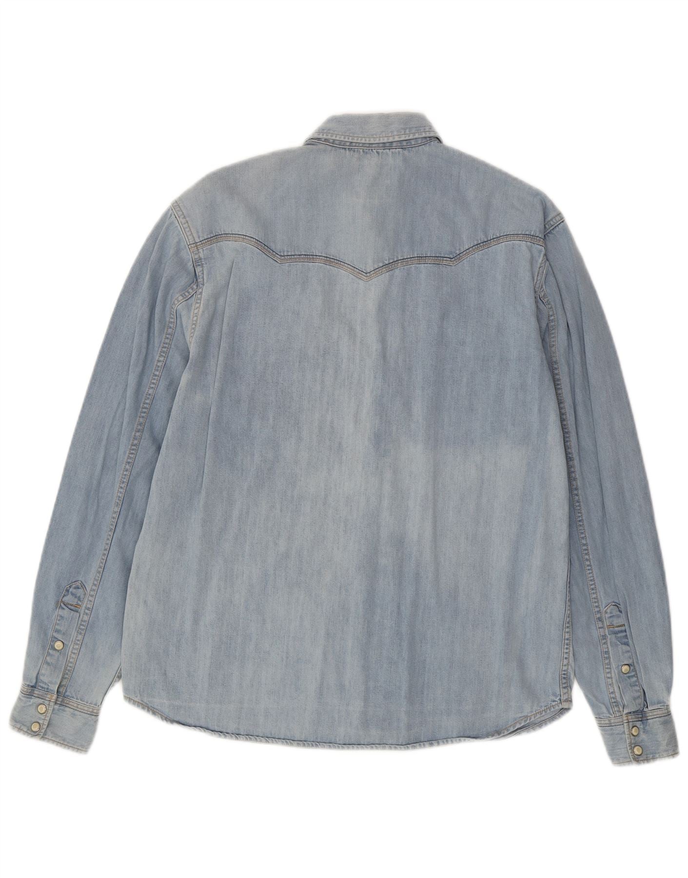 WRANGLER Camisa jeans masculina casual pequena de algodão azul