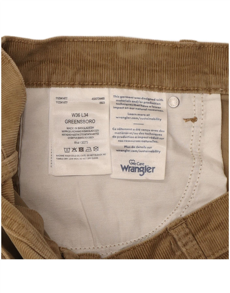 WRANGLER Mens Greensboro Straight Corduroy Trousers W36 L30 Brown Cotton