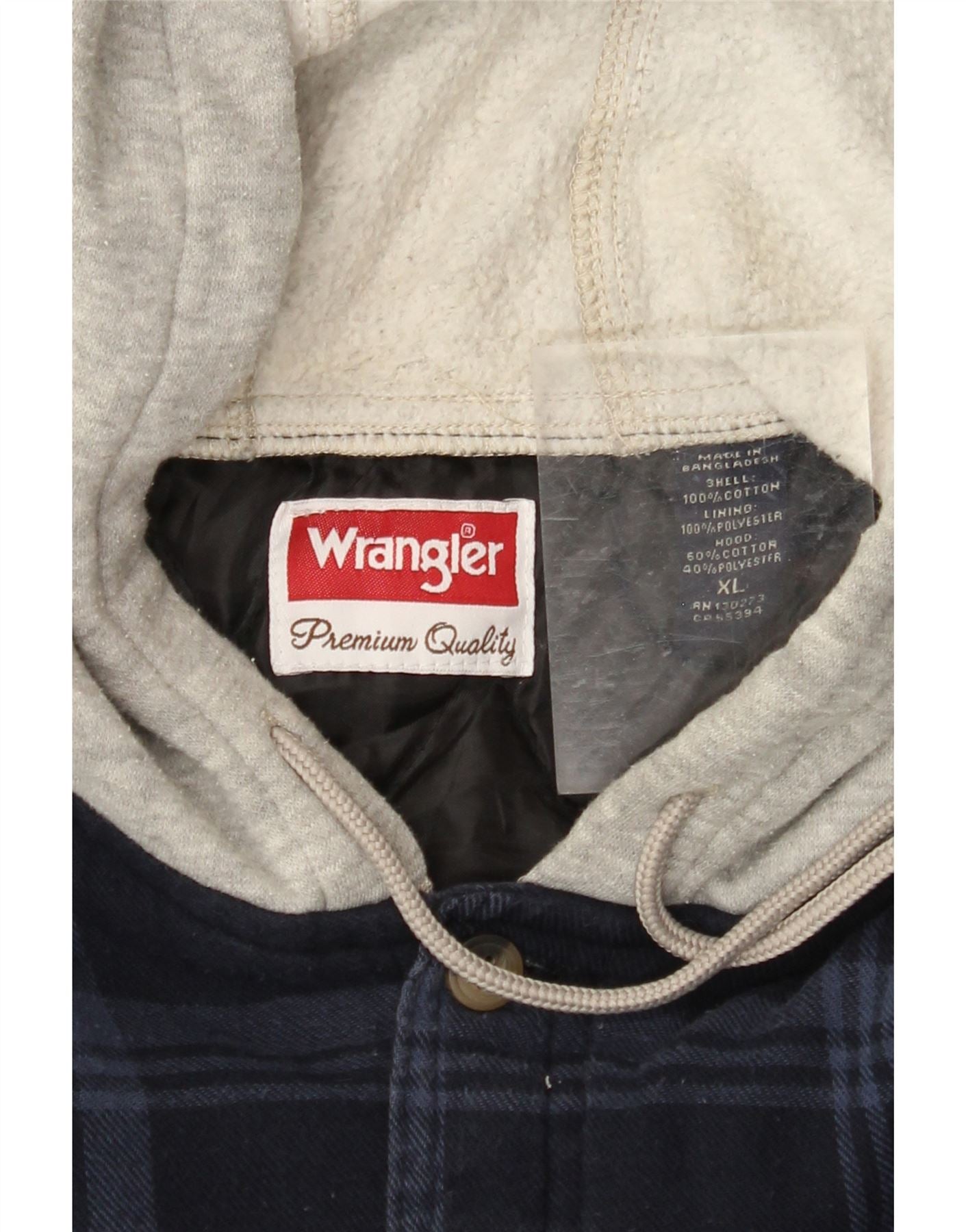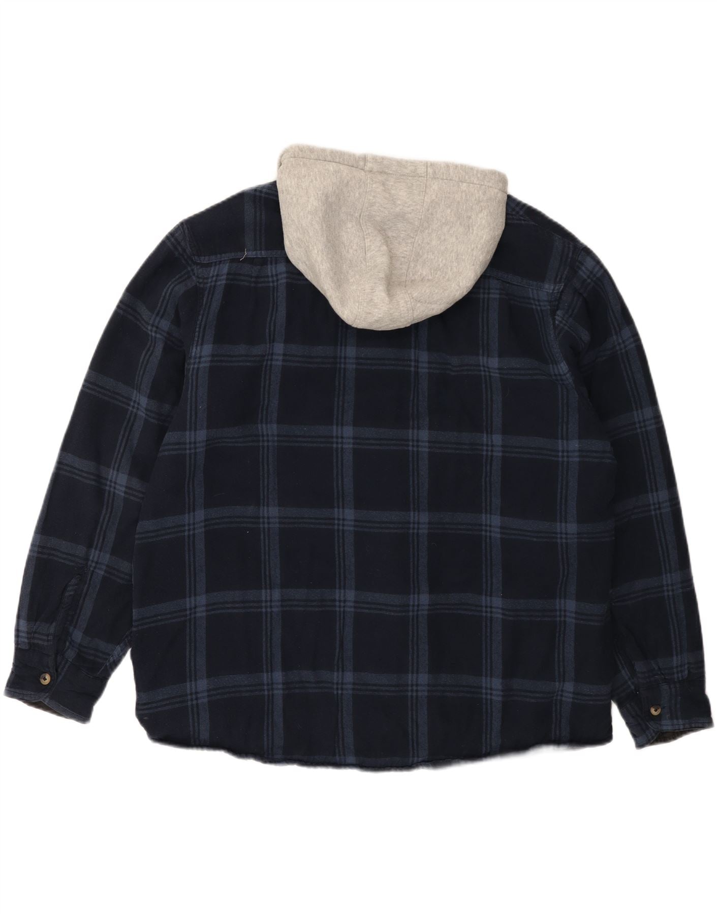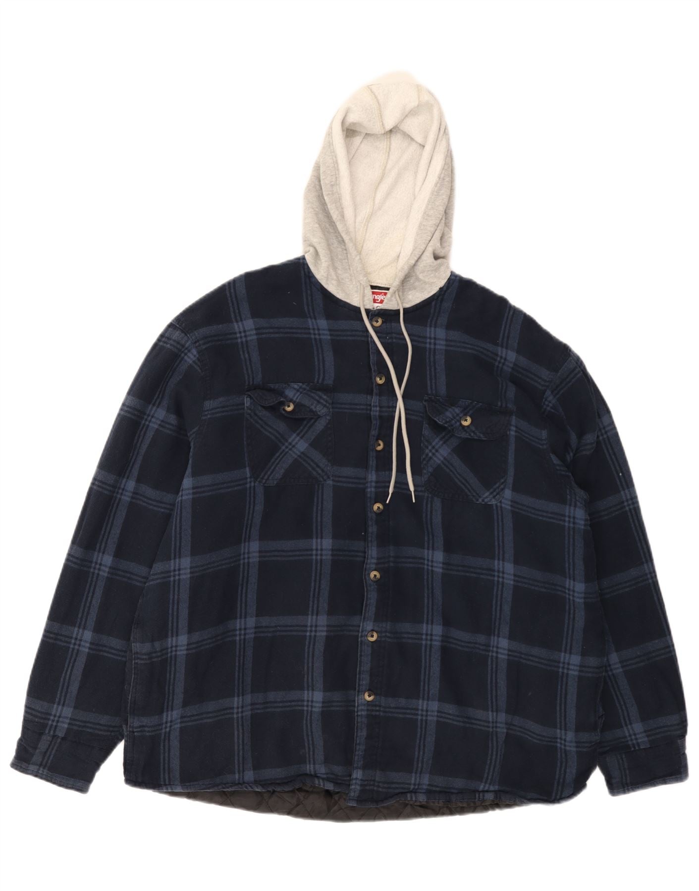 WRANGLER Mens Hooded Lumberjack Flannel Shirt XL Navy Blue Check Cotton