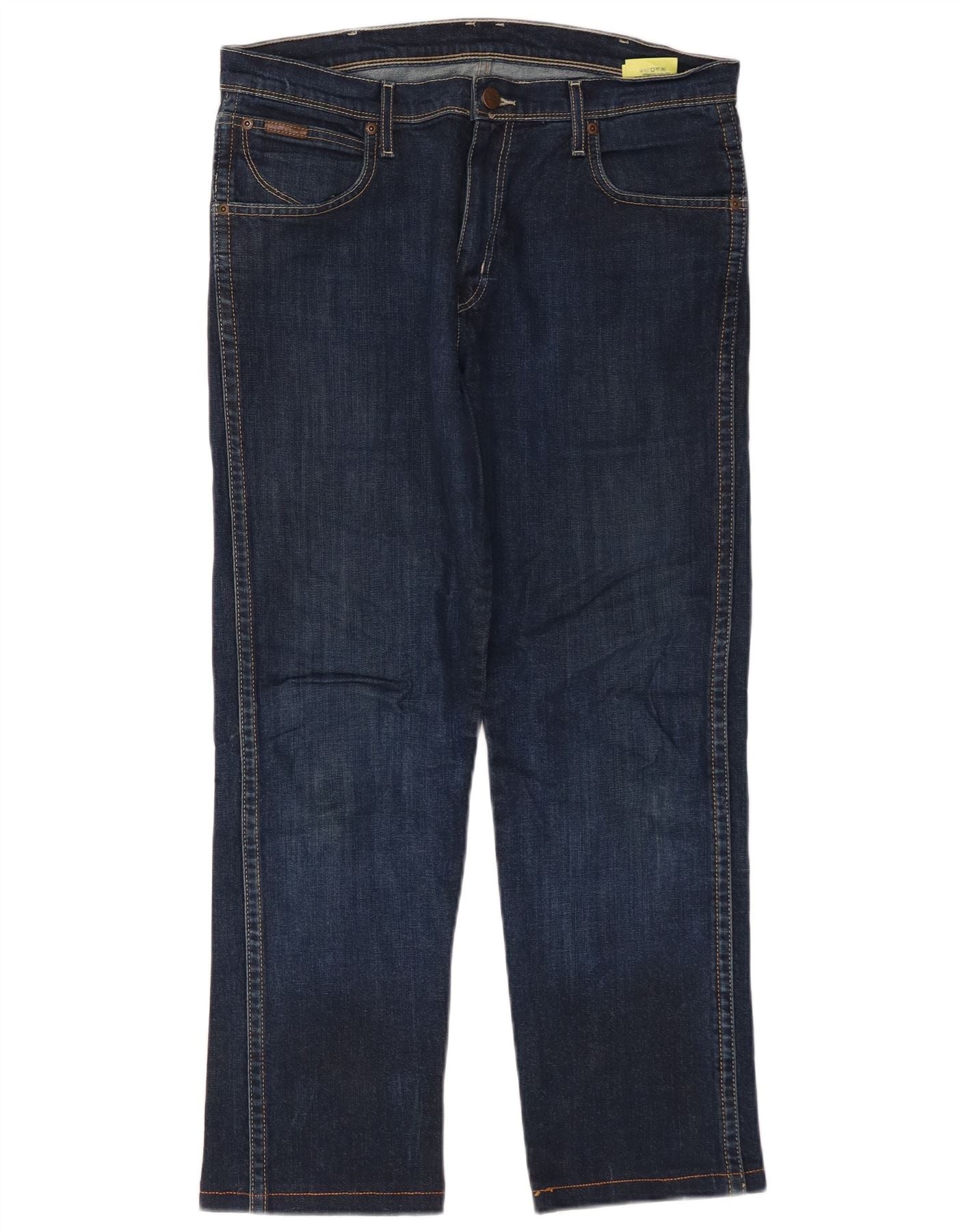 WRANGLER Masculino Roxboro Straight Jeans W32 L34 Azul Algodão