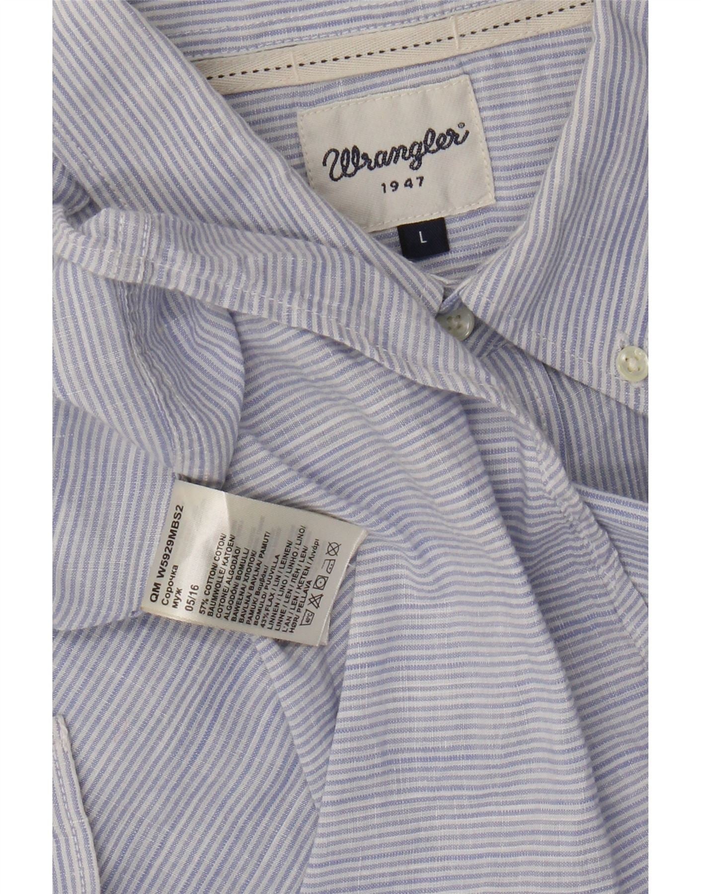 Camisa masculina Wrangler de algodão listrado azul grande