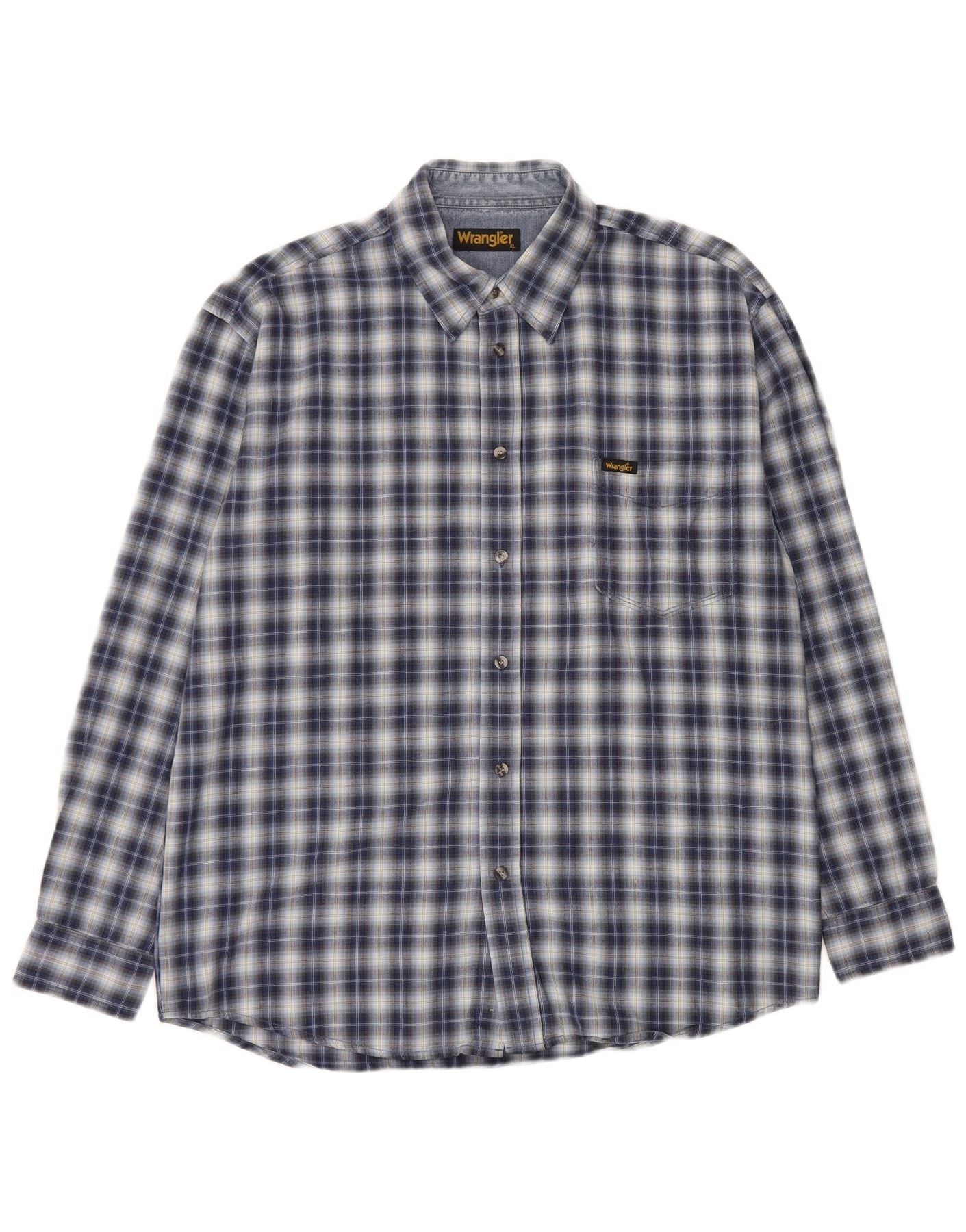 - Descrição da IA: Esta camisa de flanela masculina Wrangler é confeccionada em flanela macia 100% algodão. Possui um padrão clássico de xadrez azul e cinza. O decote com gola e botões frontais completos oferecem um visual atemporal. Mangas compridas com punhos abotoados e corte regular garantem conforto. Um único bolso no peito acrescenta detalhes práticos. Esta camisa é perfeita para um estilo casual mas refinado.