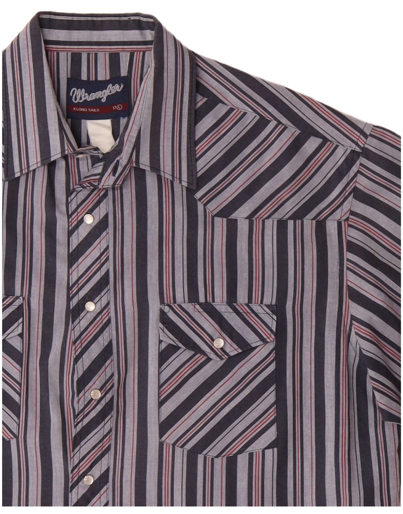 Camisa Wrangler masculina de manga curta tamanho 17 XL listrada azul