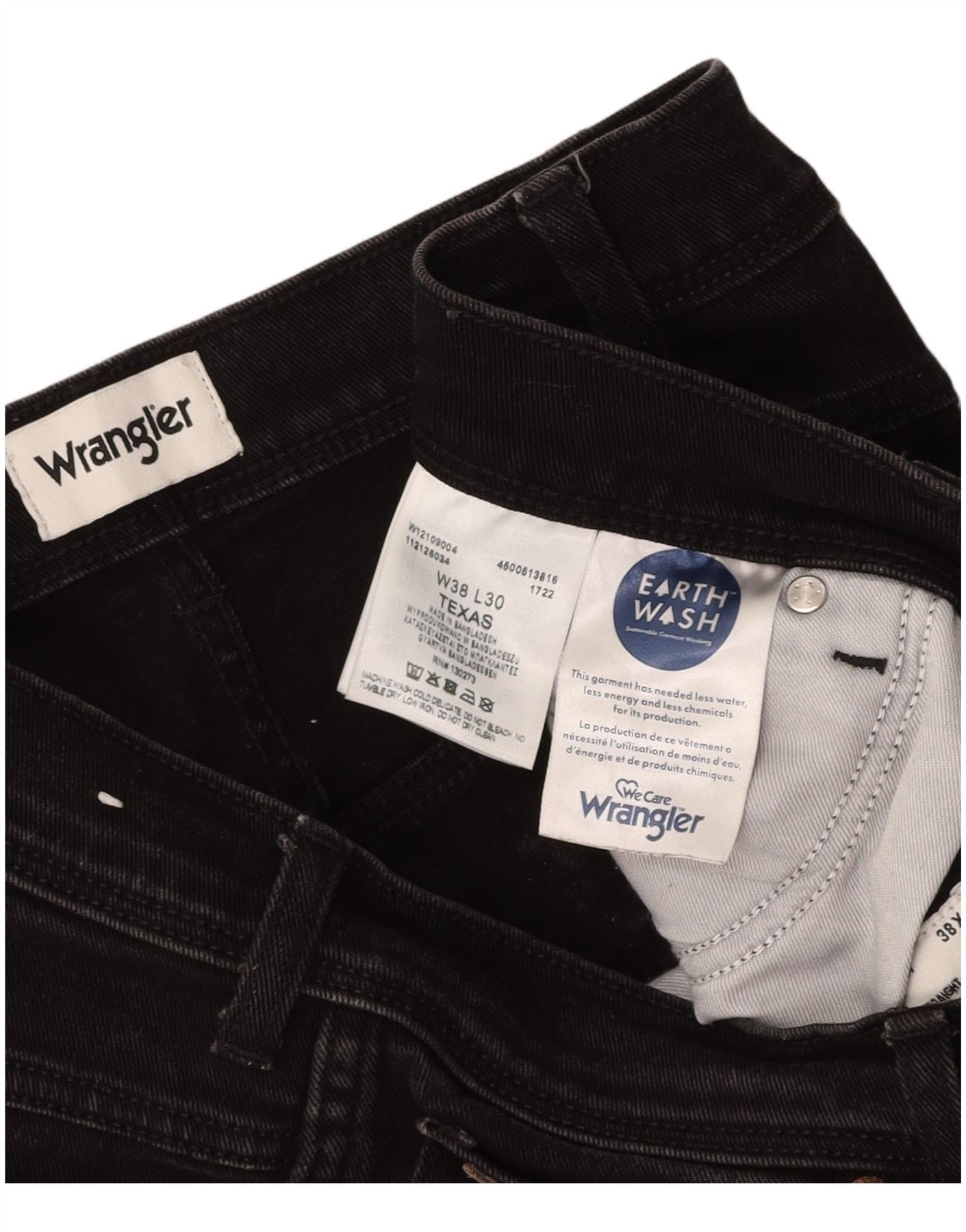 WRANGLER Masculino Texas Straight Jeans W38 L30 Algodão Preto