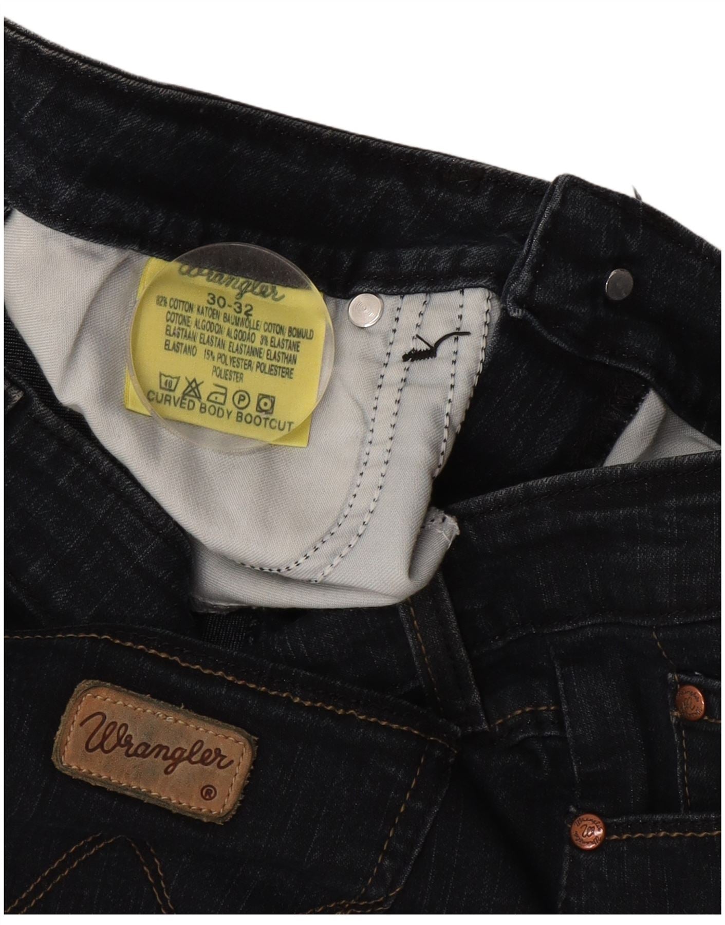 Wrangler feminino curva bootcut jeans W30 L32 algodão azul marinho