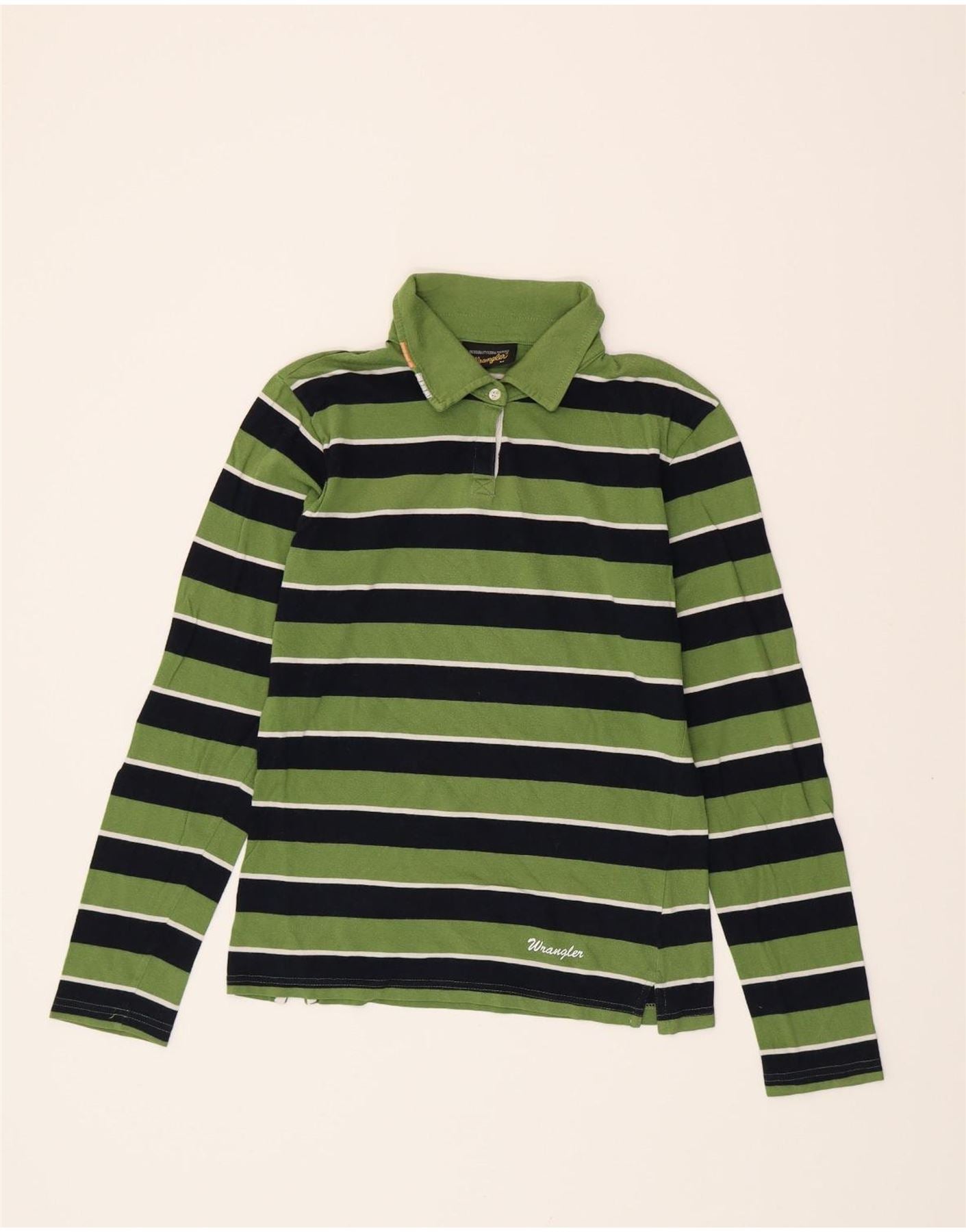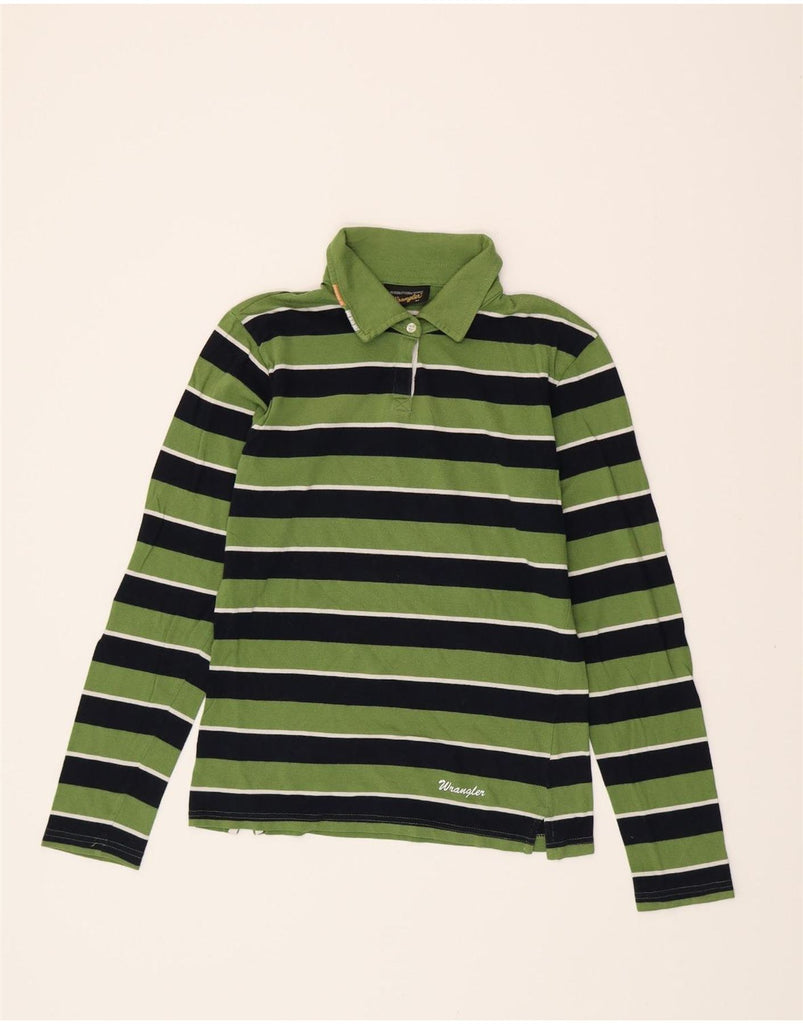 WRANGLER Womens Long Sleeve Rugby Polo Shirt UK 12 Medium Green Striped