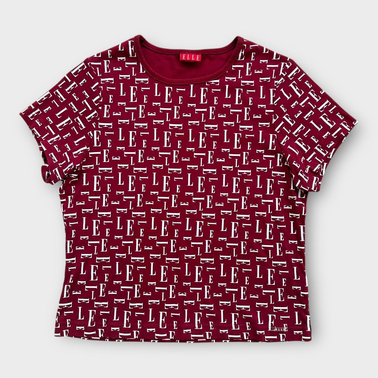 Monograma Elle Y2K vintage do início dos anos 2000 em toda a parte superior estampada em vermelho e branco