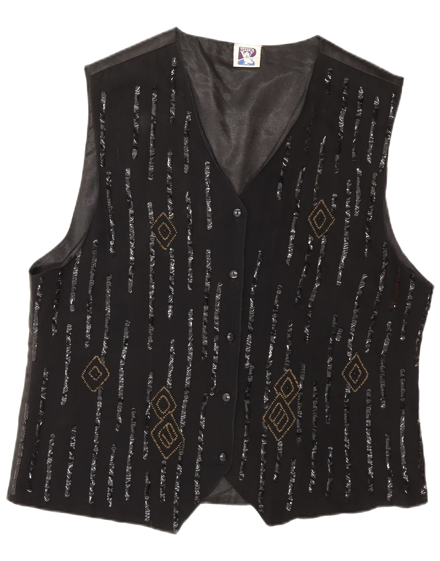 Colete feminino Yessica UK 18 XL poliéster geométrico preto