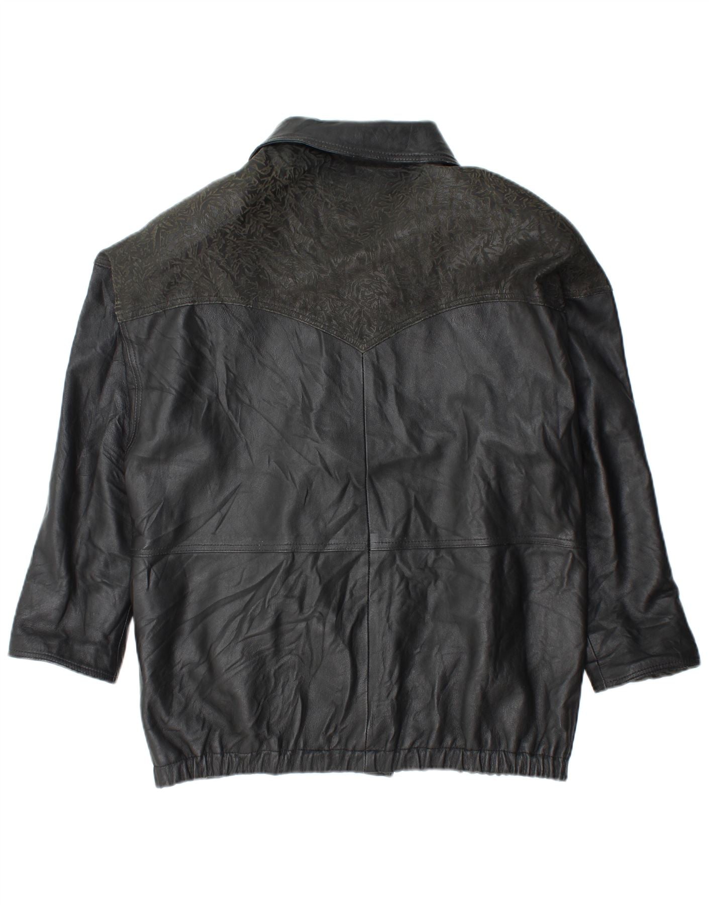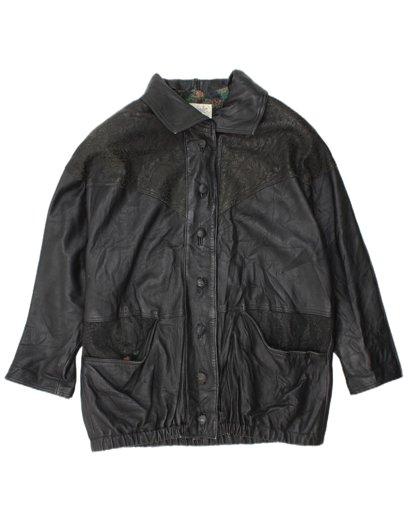 Jaqueta feminina de couro grande YUPPIE Reino Unido 18 XL preta floral