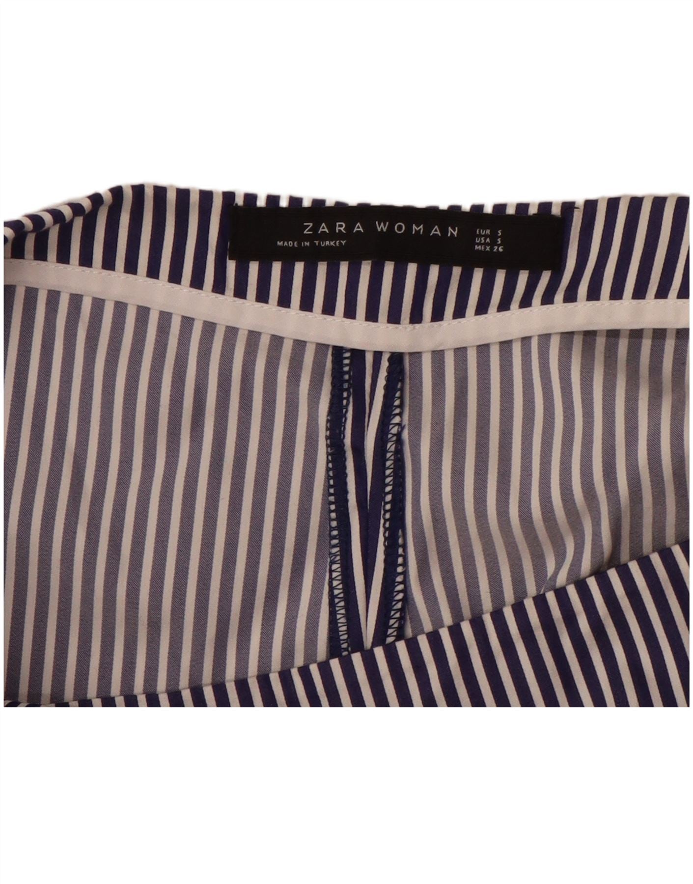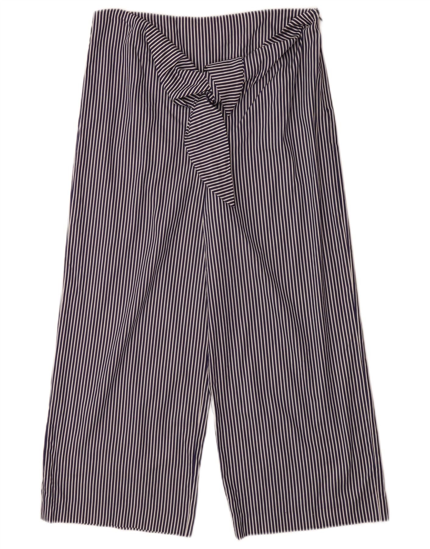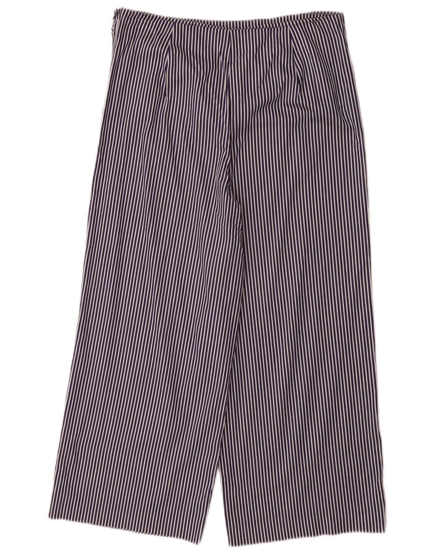 ZARA Calça capri feminina de perna larga pequena W26 L23 risca de giz azul marinho