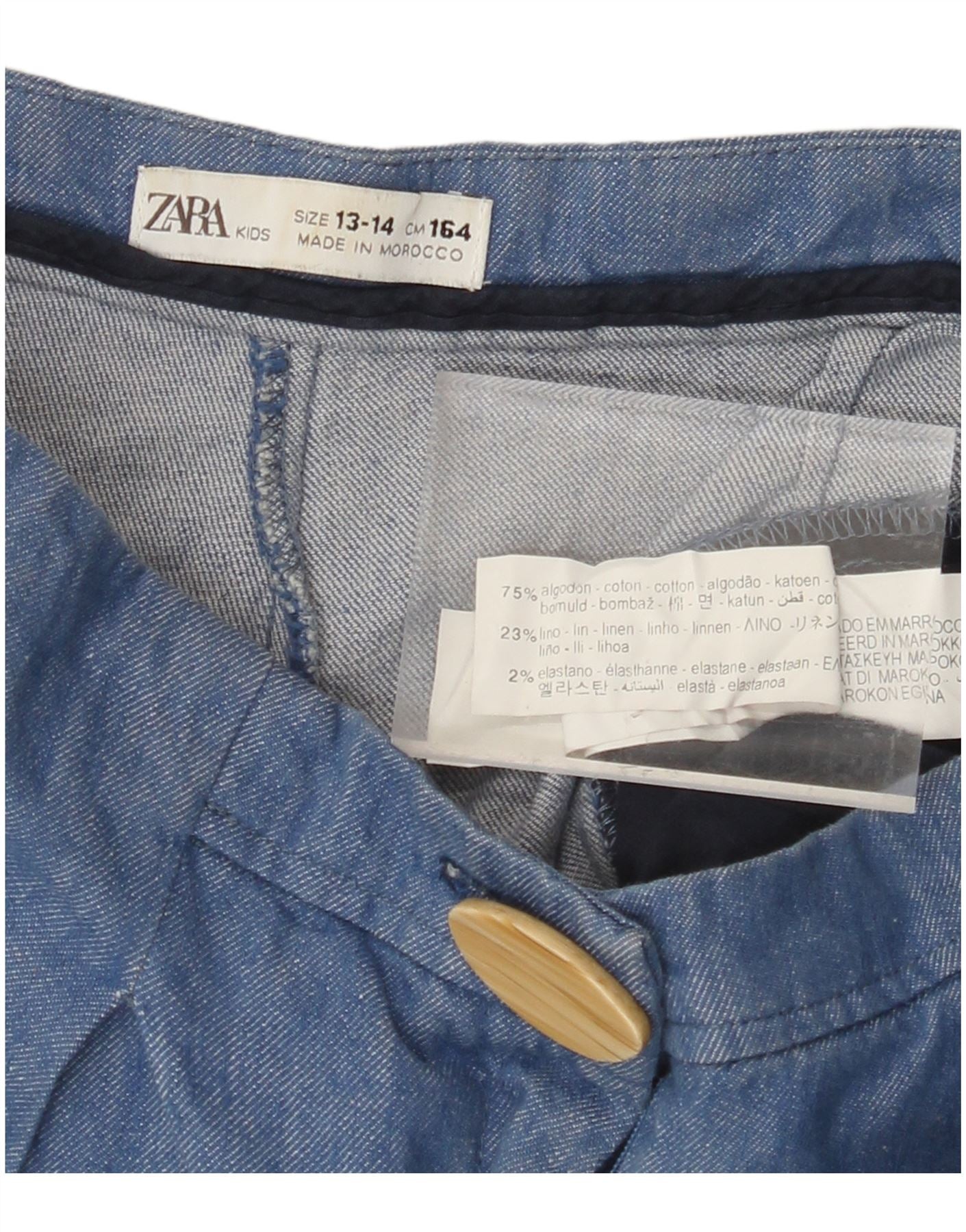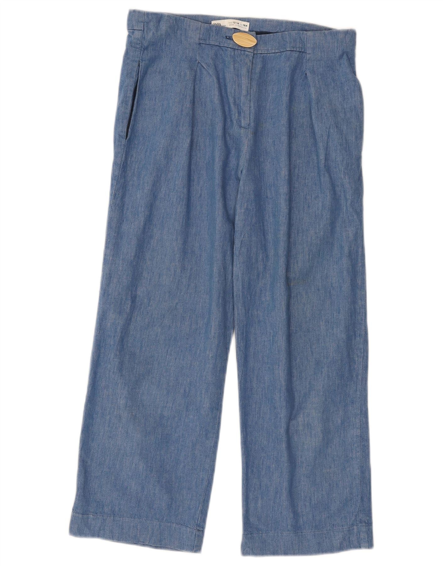 ZARA Calças retas casuais para meninas 13-14 anos W27 L23 Azul Algodão