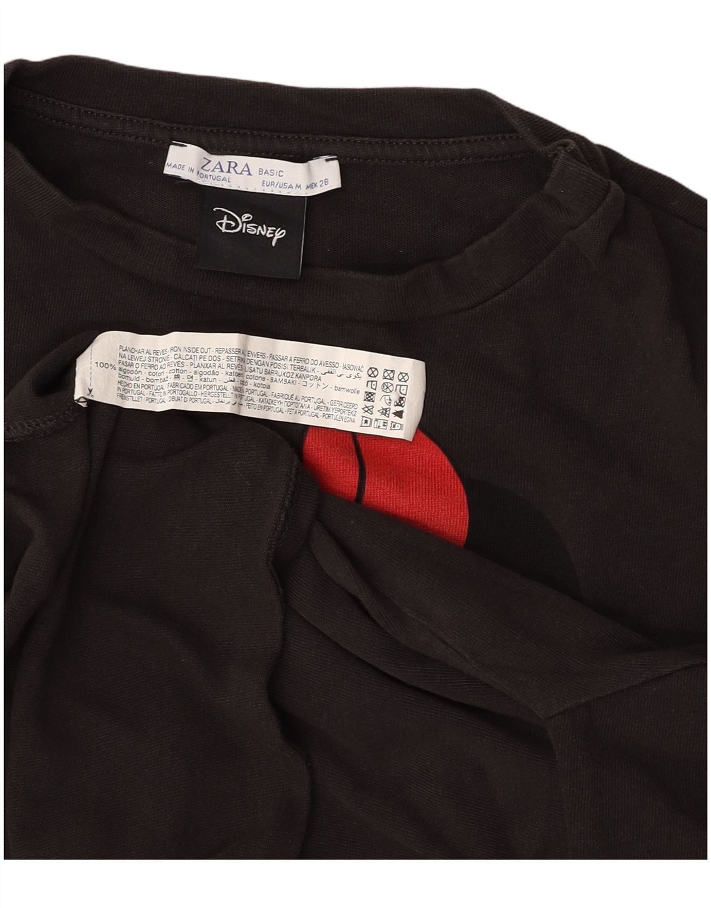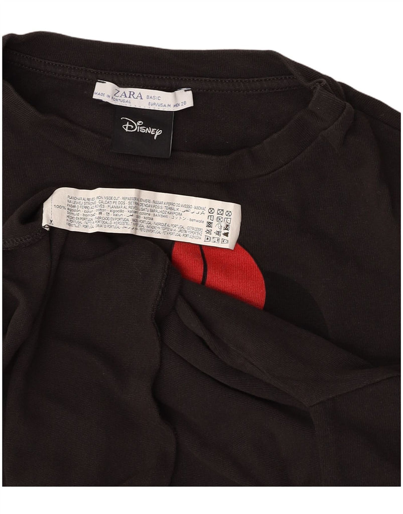ZARA Camiseta Feminina Disney Crop Graphic Top Reino Unido 14 Algodão Preto Médio