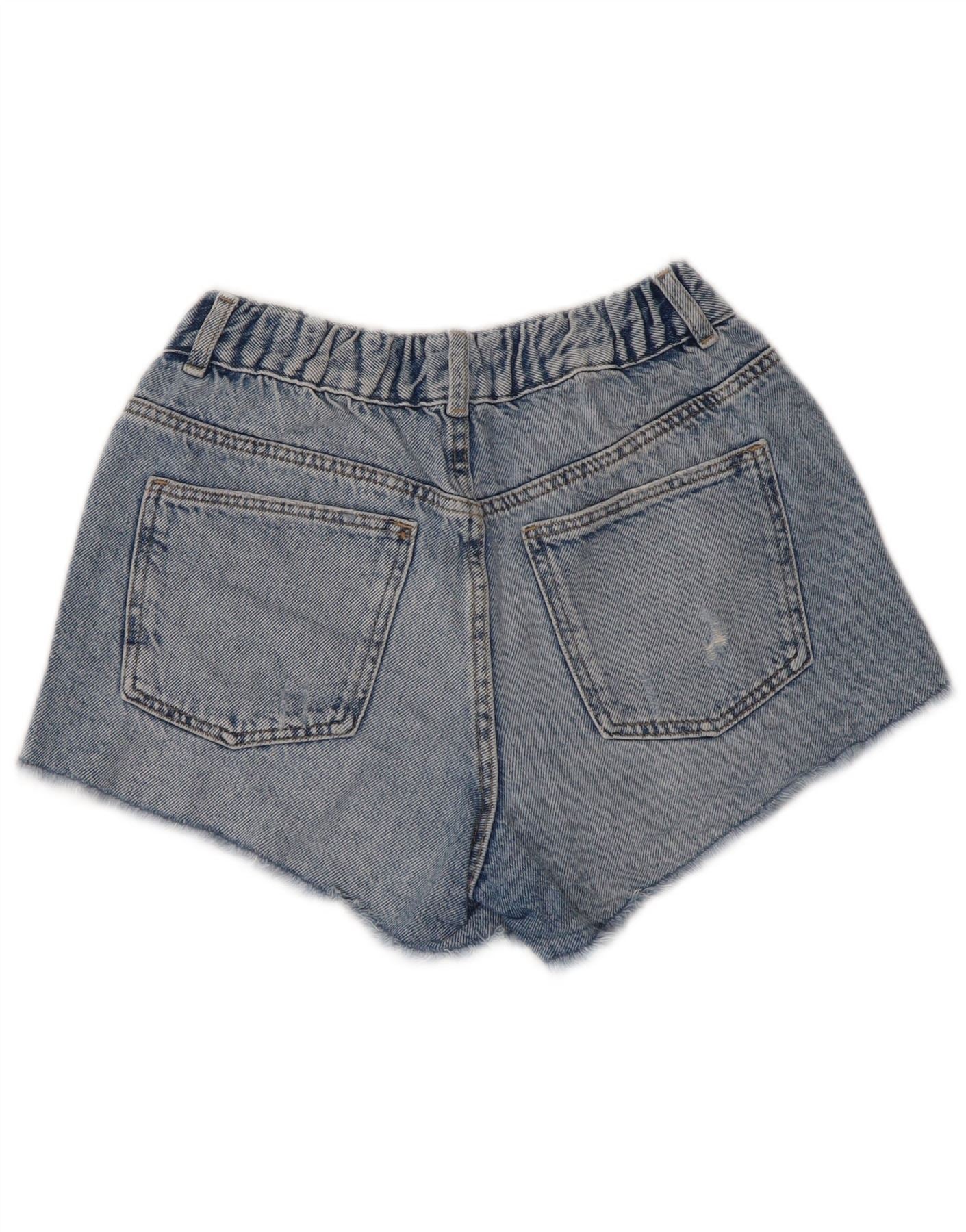 ZARA Shorts jeans femininos de cintura alta desgastados 13-14 anos W28 azul