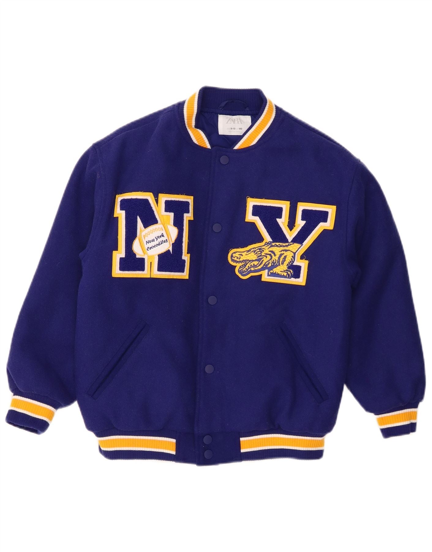 Jaqueta ZARA Girls New York Crocodiles Graphic Varsity 9-10 anos Azul marinho