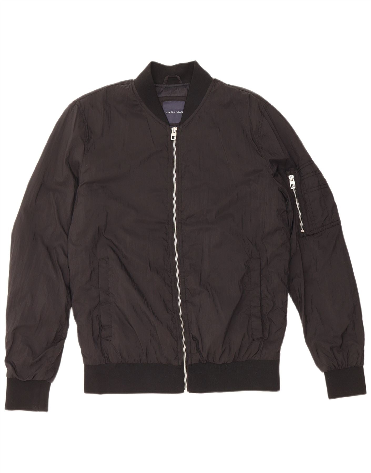 Jaqueta bomber masculina ZARA UK 38 poliéster preto médio