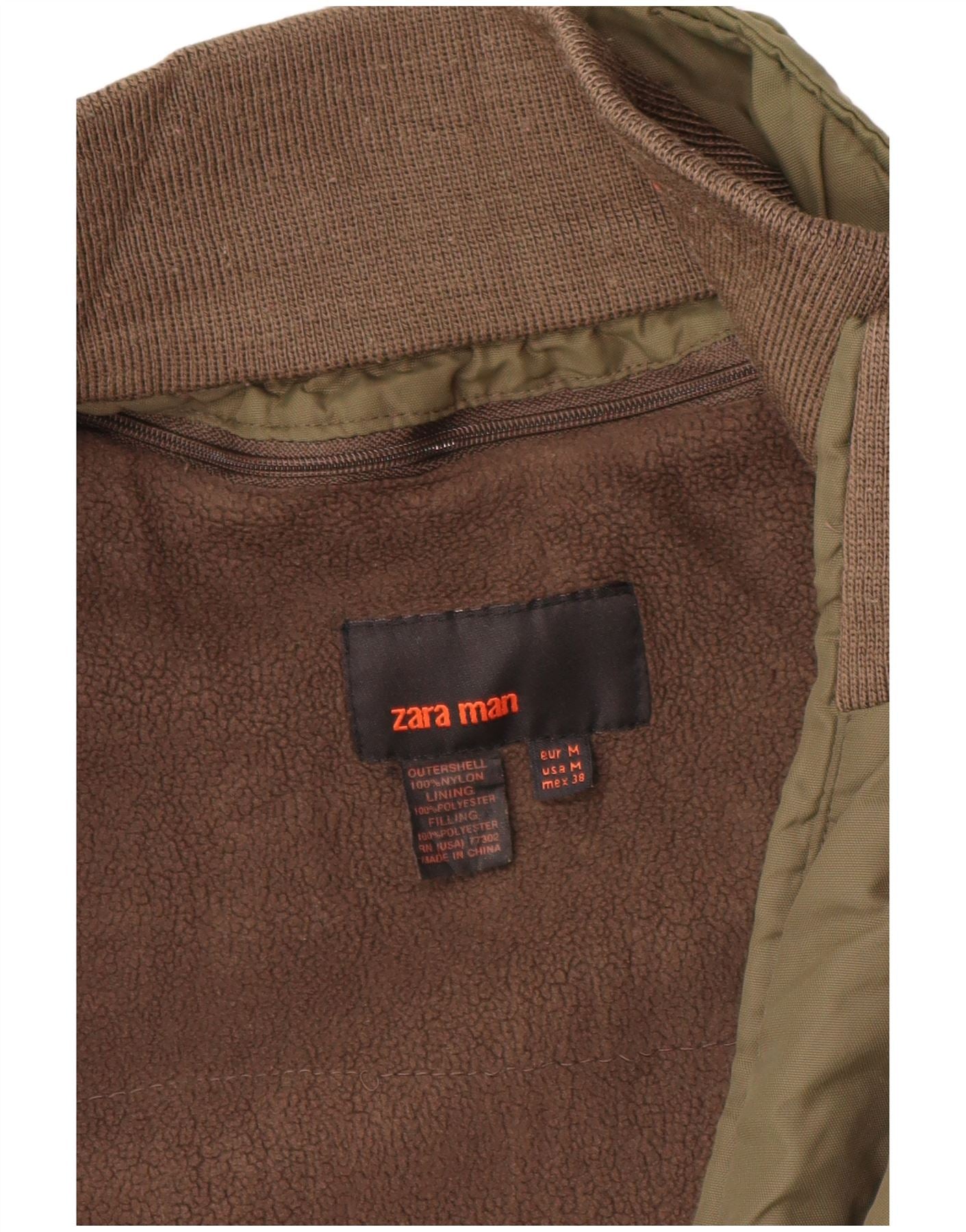 Jaqueta bomber masculina ZARA Reino Unido 38 nylon cáqui médio