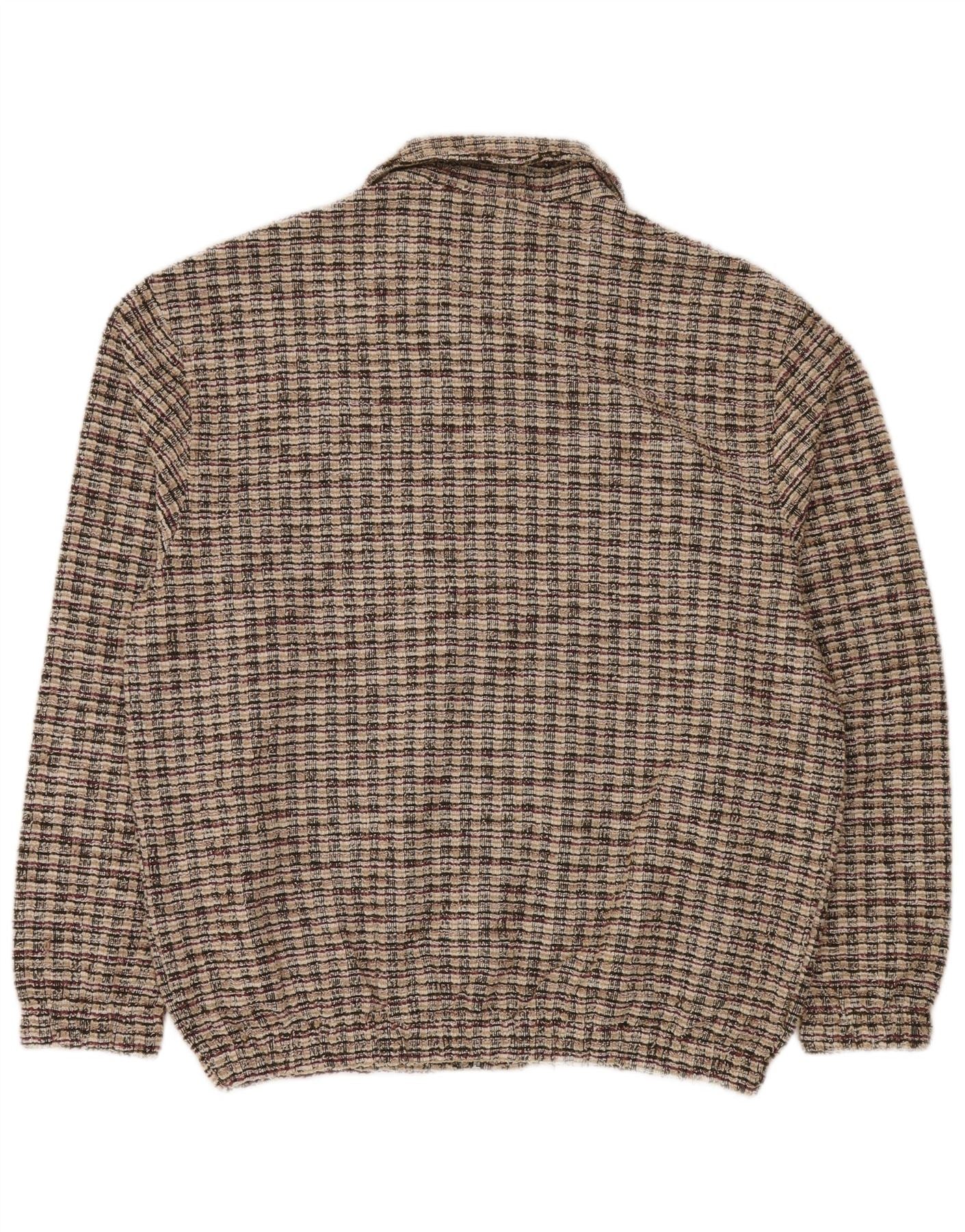 Suéter cardigã masculino Zara grande poliéster xadrez bege