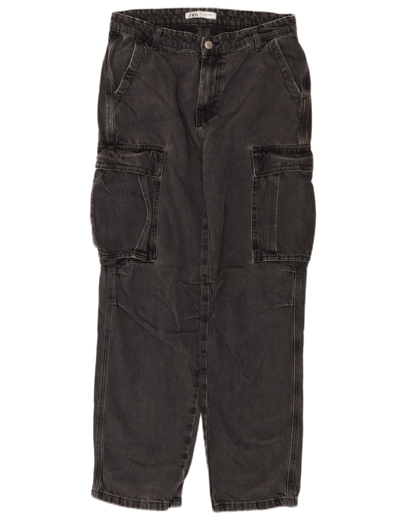 Zara Mens Cargo Straight Jeans EU 40 Médio W31 L31 Cinza