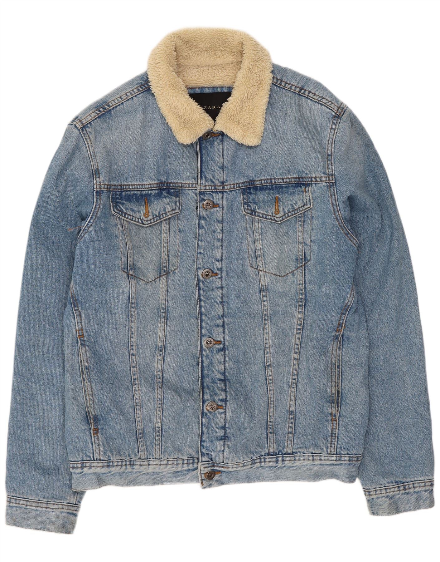 Jaqueta jeans masculina Zara Sherpa Reino Unido 40 grande azul