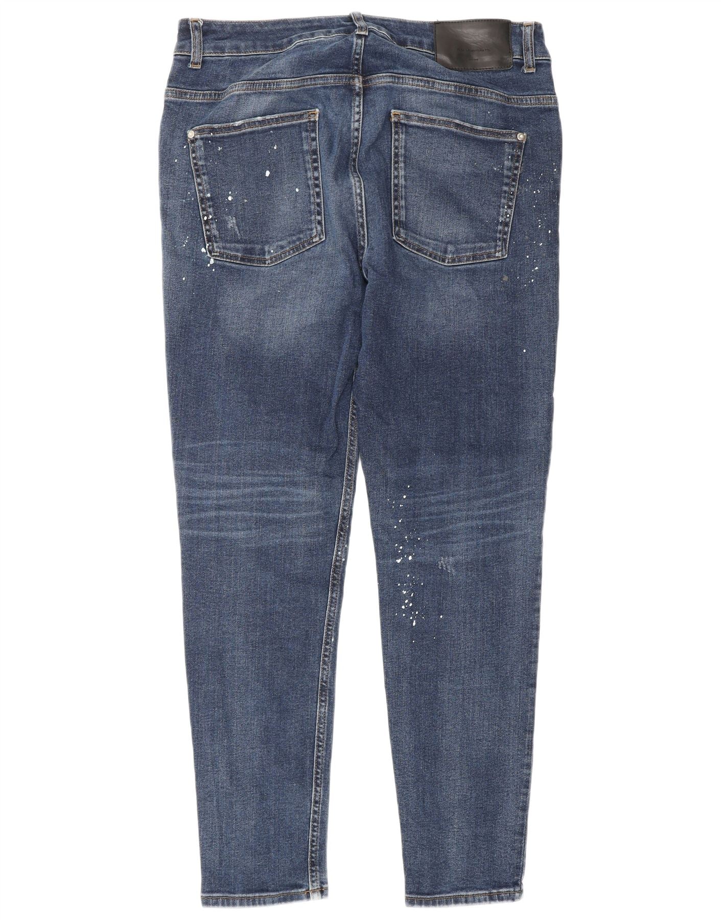 ZARA Jeans skinny masculino desgastado EU 46 XL W36 L30 algodão manchado azul
