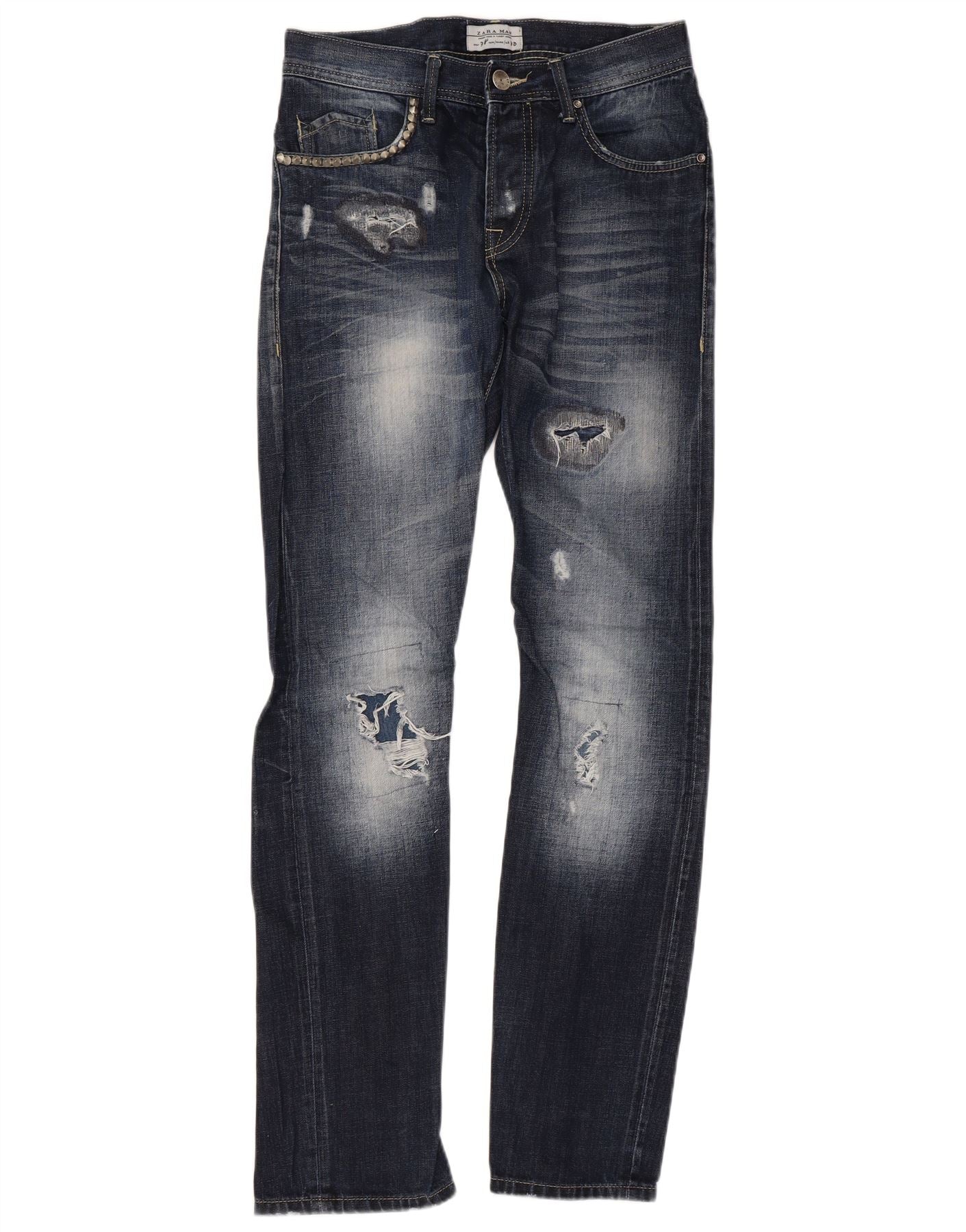 ZARA Mens Jeans Slim Distressed EU 38 Pequeno W30 L33 Azul Marinho
