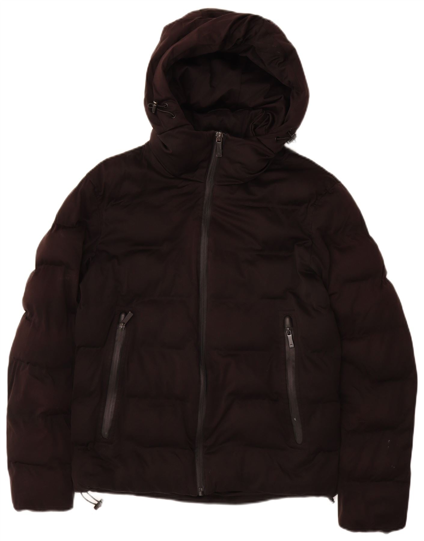 Jaqueta acolchoada com capuz masculina Zara UK 36 poliéster preto pequeno