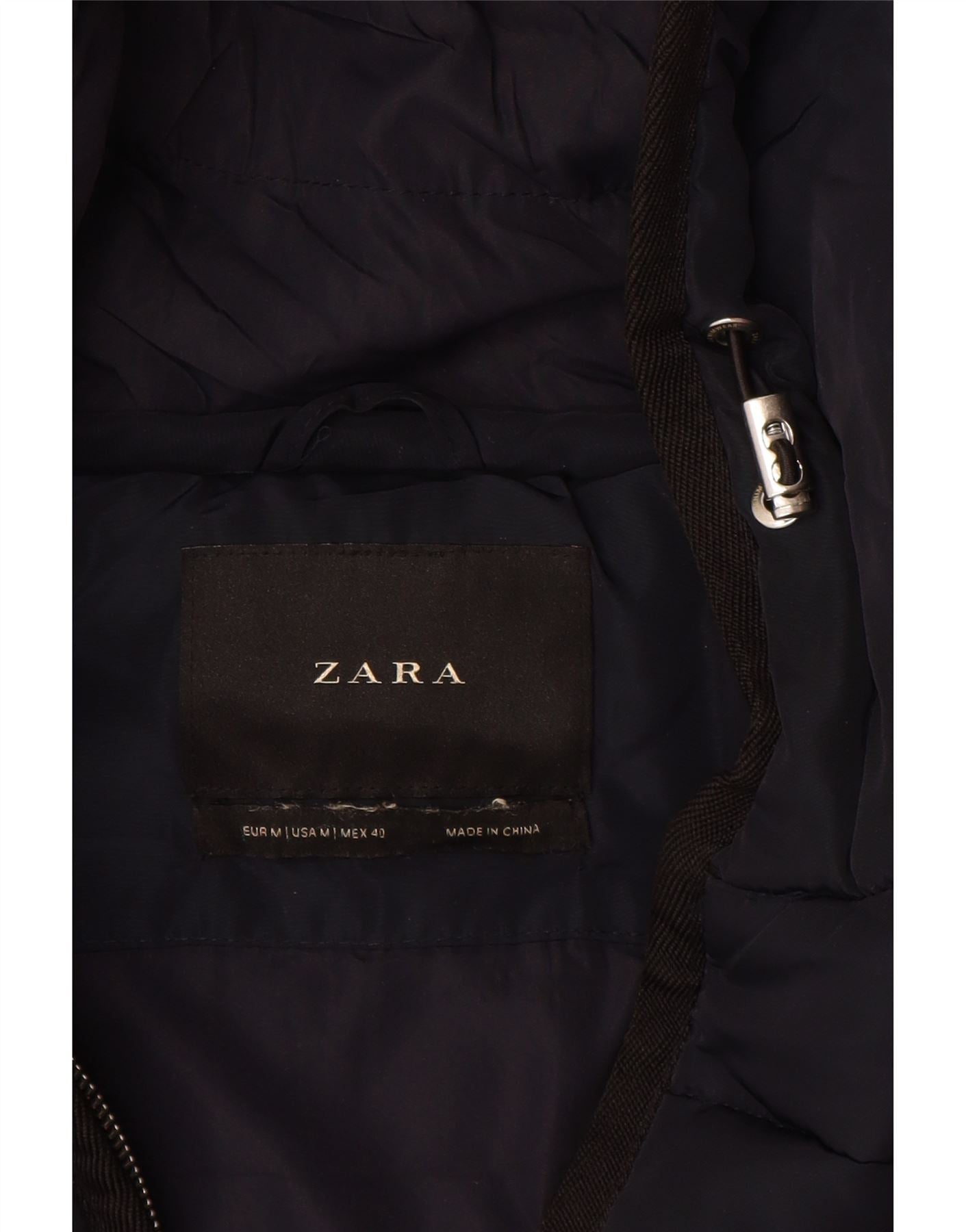 Jaqueta masculina acolchoada com capuz ZARA Reino Unido 38 bloco colorido azul marinho médio
